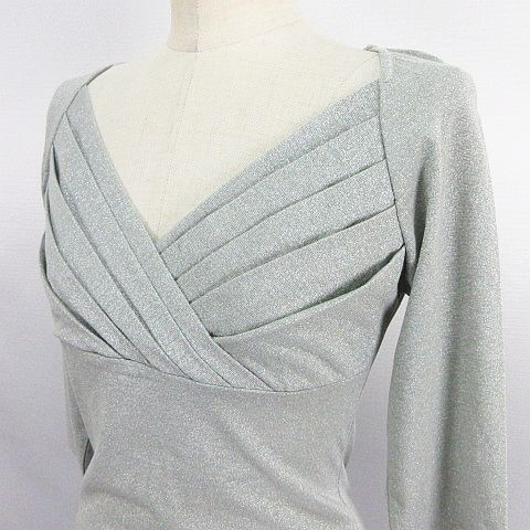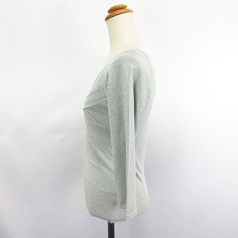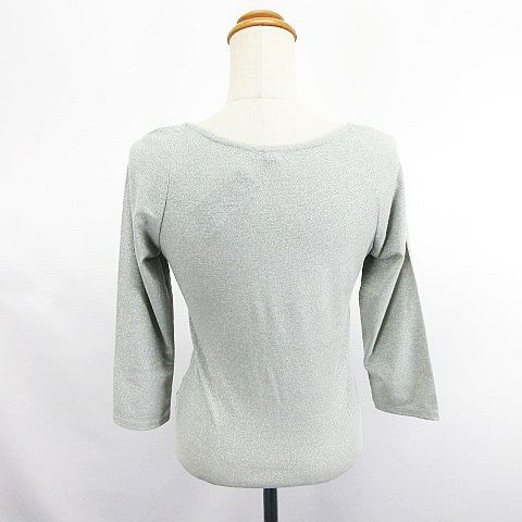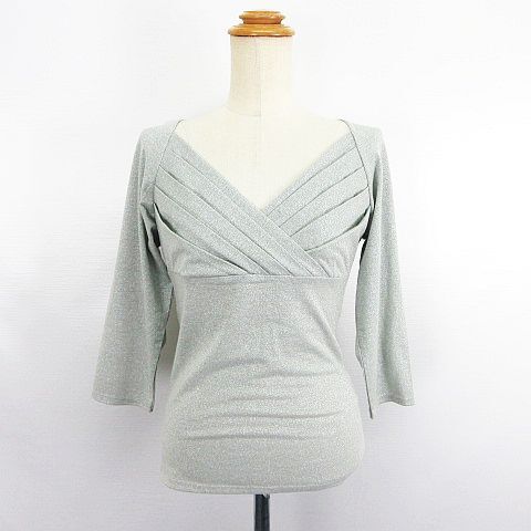 未使用品 Crescendo ニット カットソー 七分袖 カシュクール ラメ ストレッチ M グレー ※EKM レディース