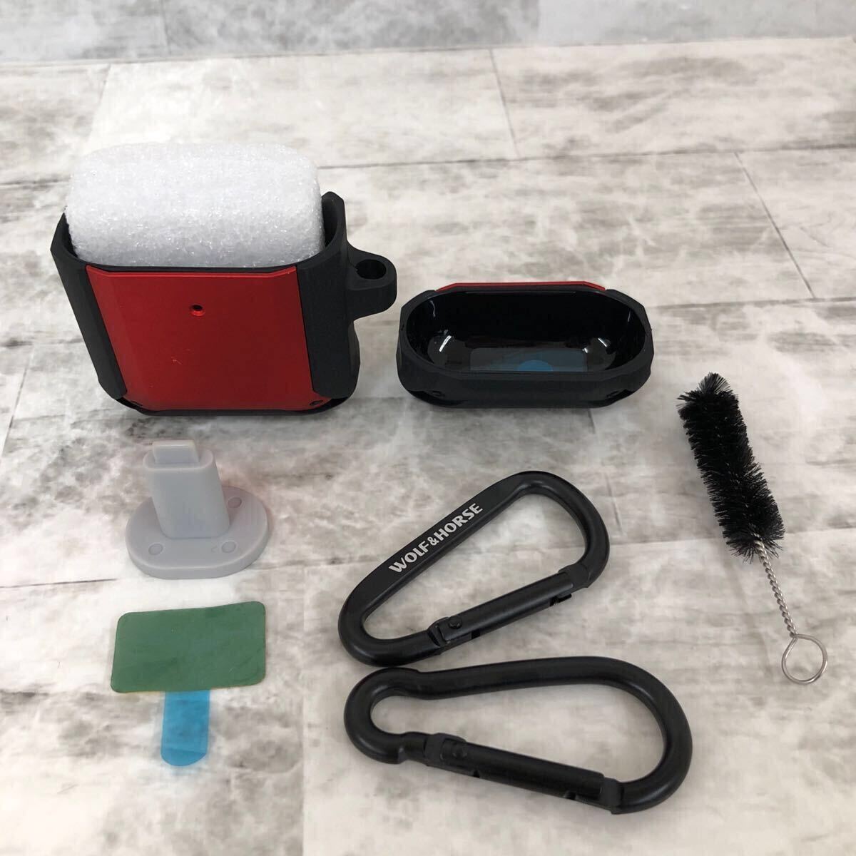 【新品】イヤフォンポーチケース Air Pods対応 カラビナクリーンニングブラシ付き 衝撃吸収 粉塵防止 TPU WOLF&HORSE