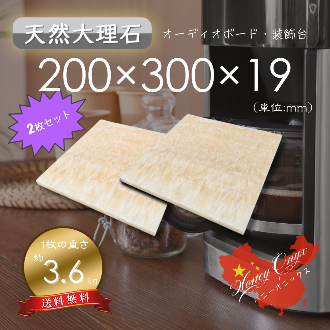 【超高級天然大理石】オーディオボード 黄色系 ハニーオニックス 2枚セット 200mm×300mm×19mm 5面磨き 新品 即決 送料無料