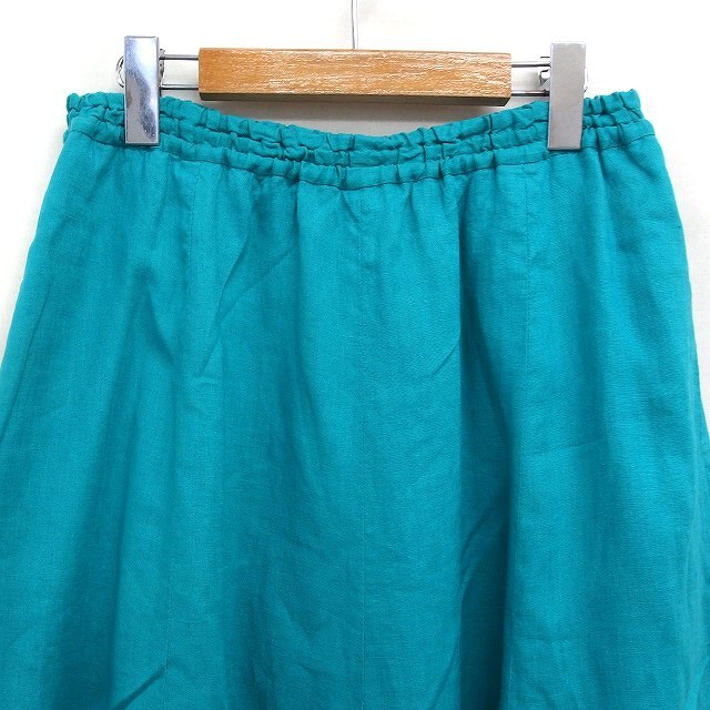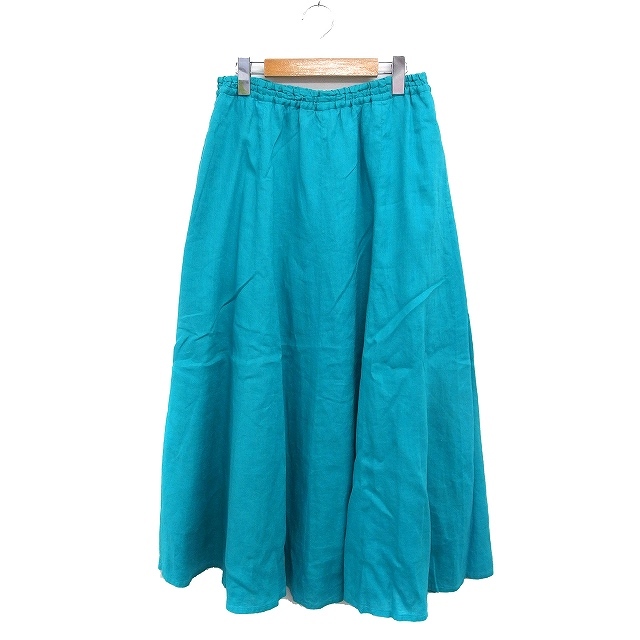 グリーンレーベルリラクシング ユナイテッドアローズ リネンフレアスカート ロング マキシ丈 無地 エメラルドグリーン 緑系 /FT レディース