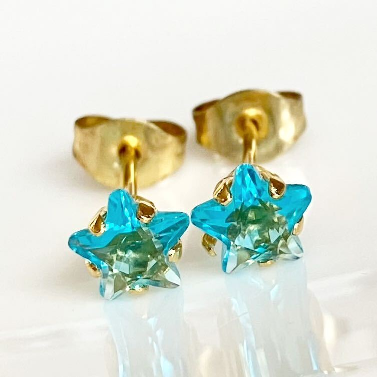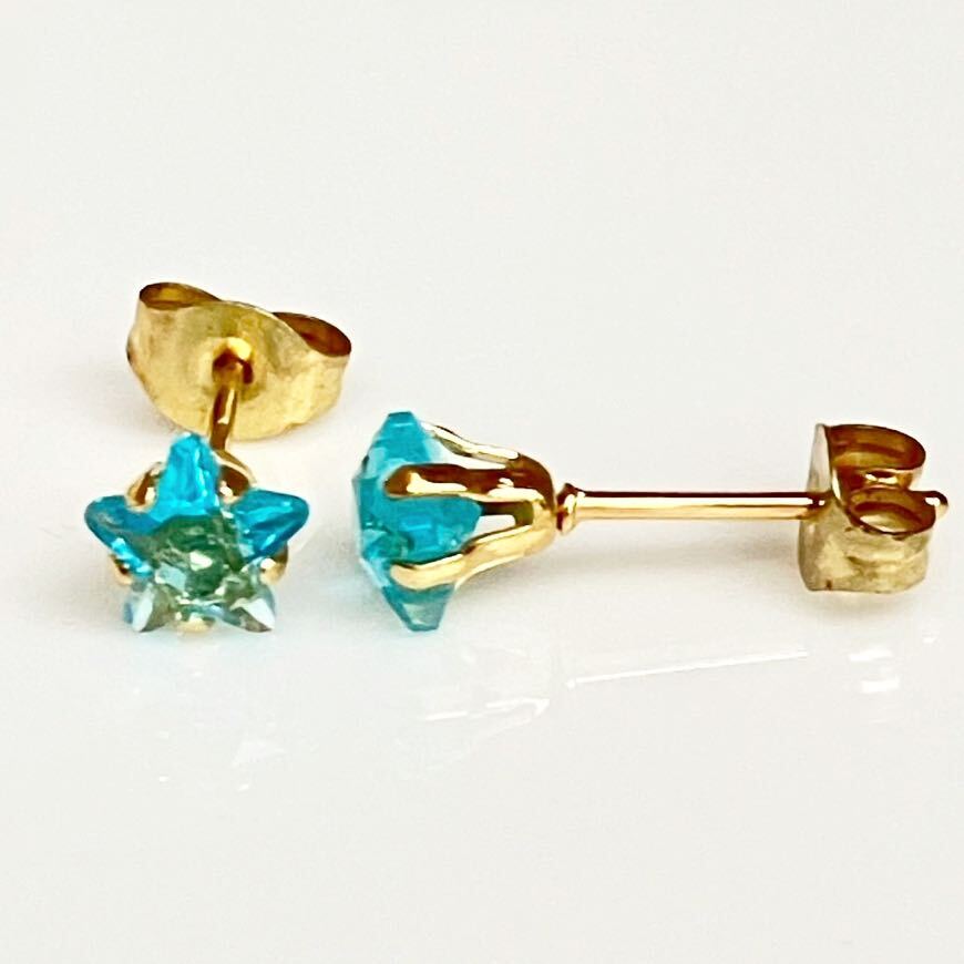 シンプルな星形AAACZトパーズのゴールドピアスです。ユニセックスデザインで、どんなファッションにもよく合うお品です。