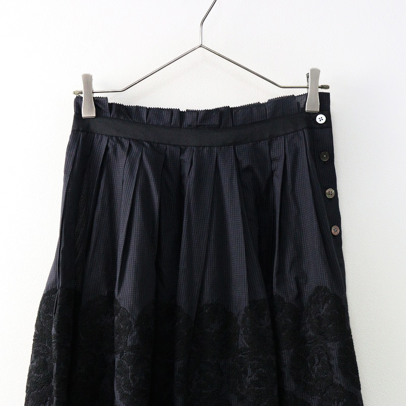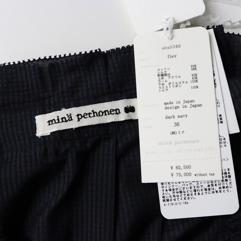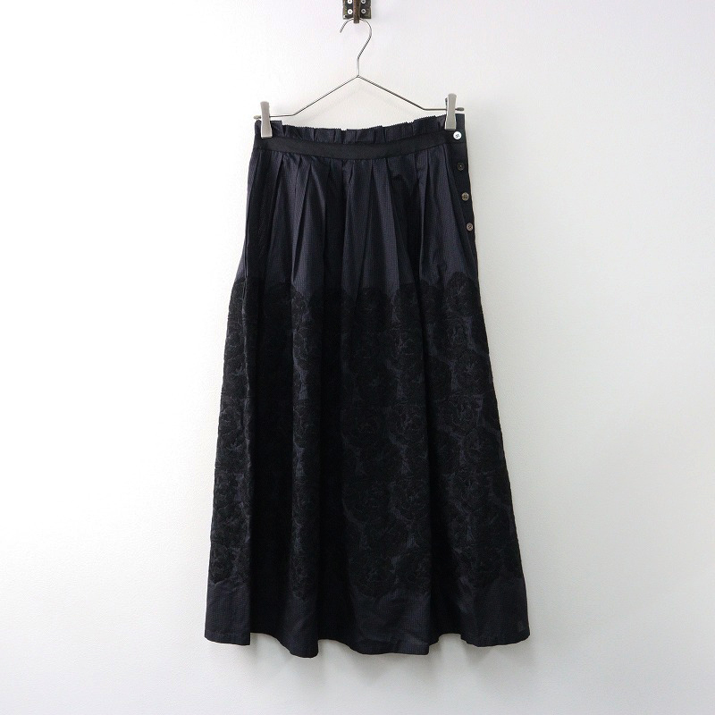 新品未使用 2023AW ミナペルホネン mina perhonen flair タックスカート 36/ダークネイビー フレア 刺繍 コットンシルク【2400014399806】