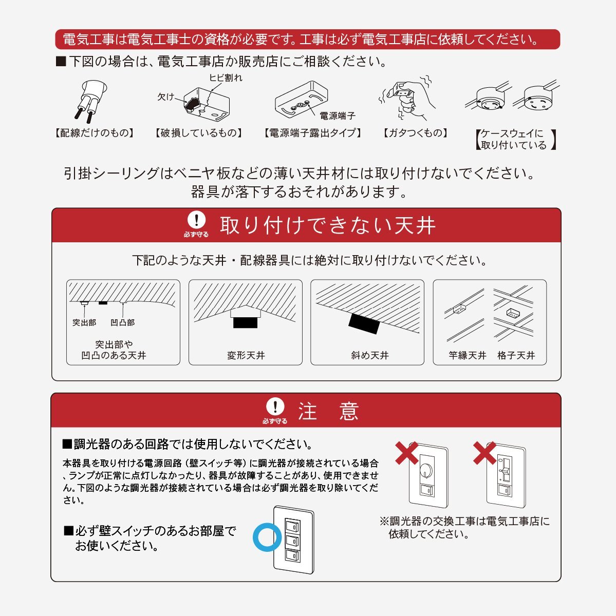 ● 必ず壁スイッチのあるお部屋でお使いください