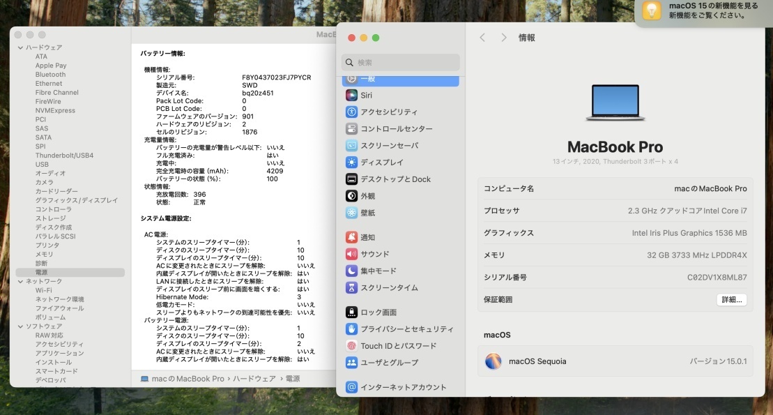 | バッテリー | バッテリーは消耗品の為、動作補償外となります。 バッテリー充放電回数は 396回です。 |