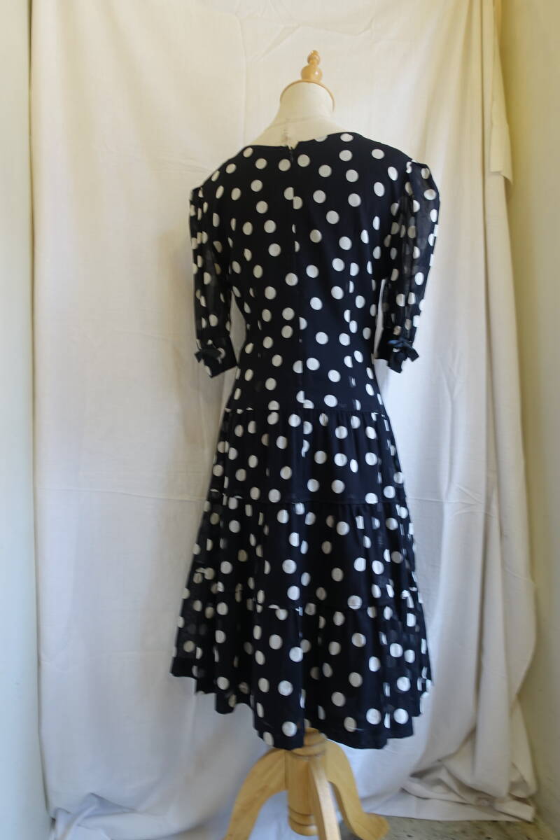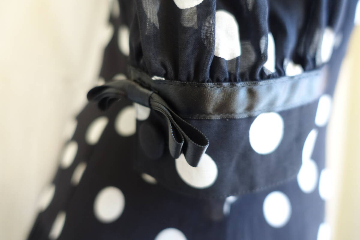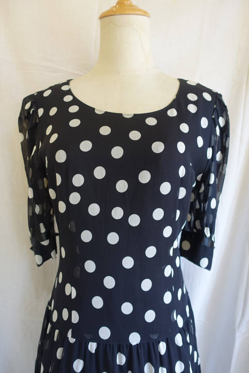 ○[70s80s90s vintage ヴィンテージ ドット 水玉 シアー袖 フレア ワンピース250315]USED古着 昭和レトロ・モダン・モッズ