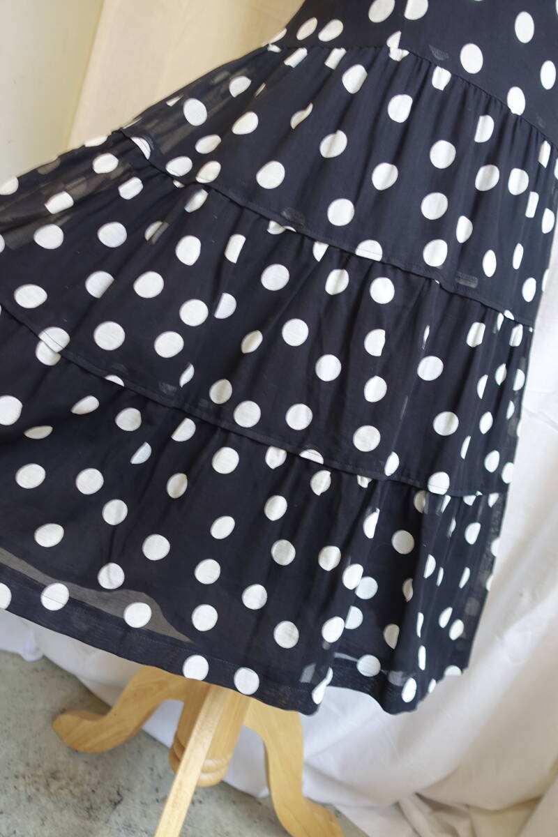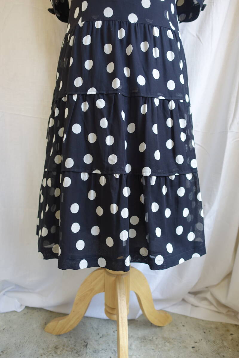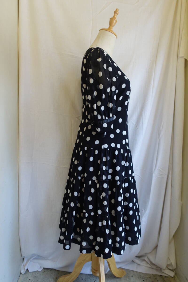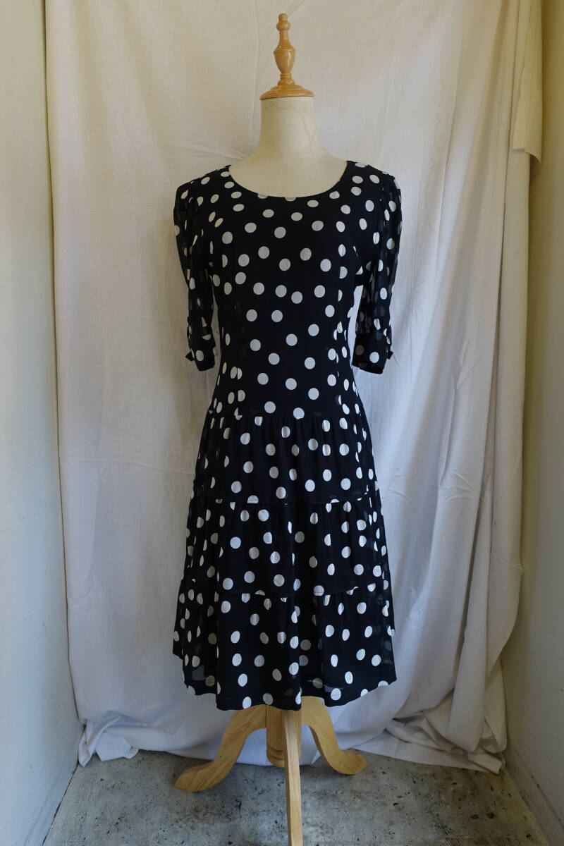 ○[70s80s90s vintage ヴィンテージ ドット 水玉 シアー袖 フレア ワンピース250315]USED古着 昭和レトロ・モダン・モッズ