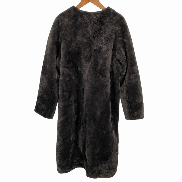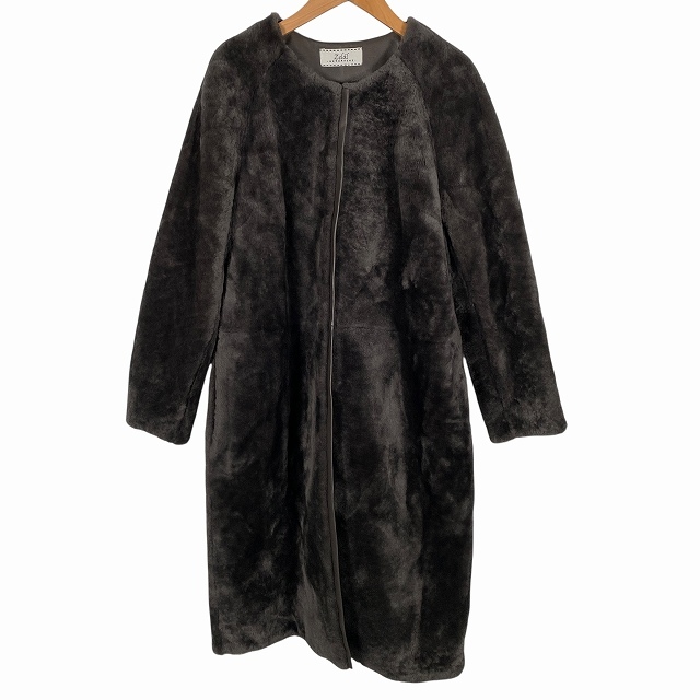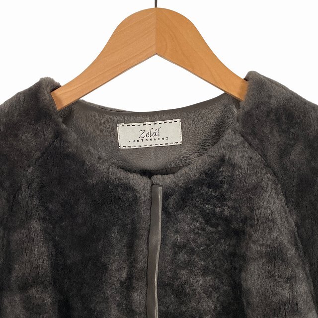 ゼラール Zelal ムートンコート ロングコート 毛皮 長袖 ノーカラー 羊革 グレー 9 M相当 レディース
