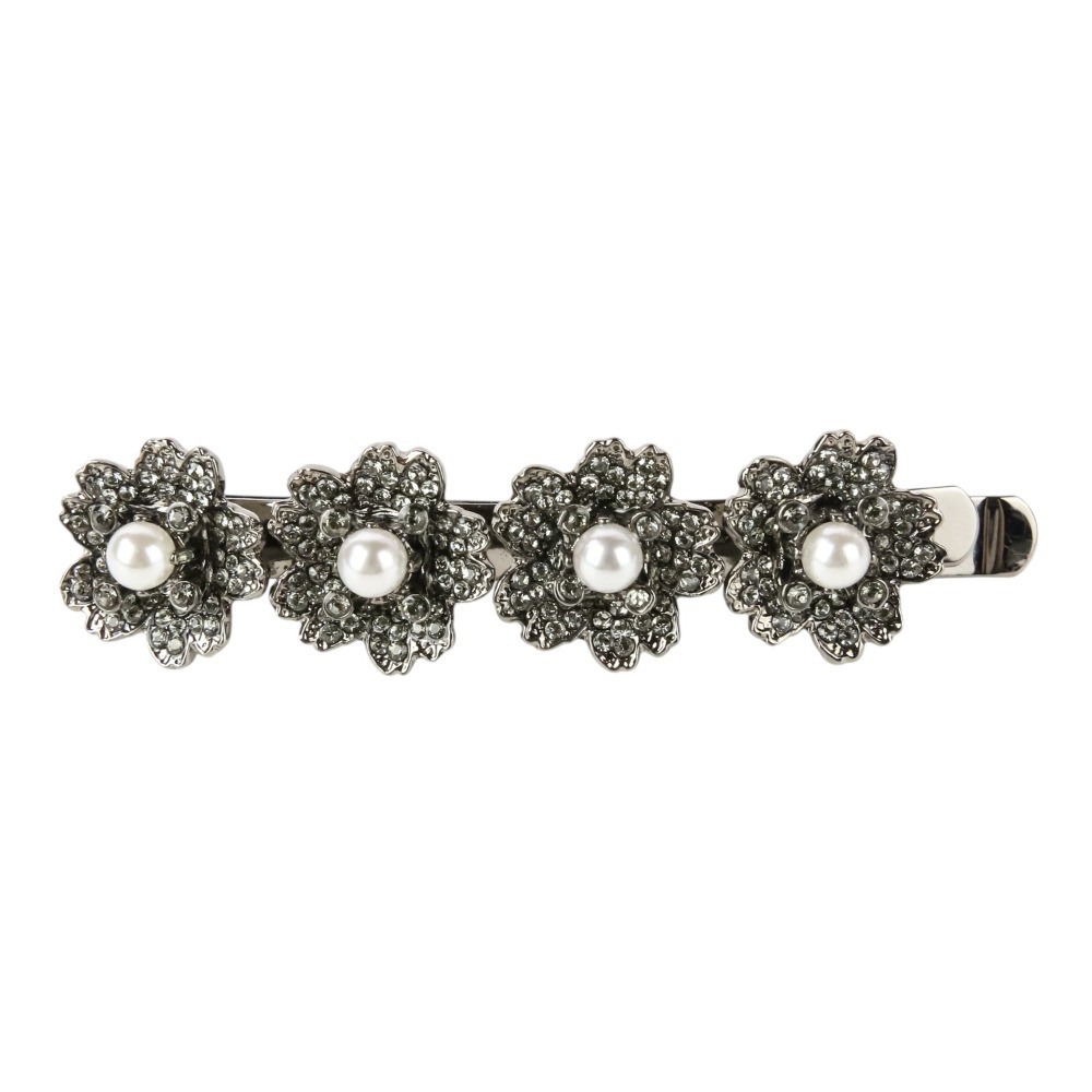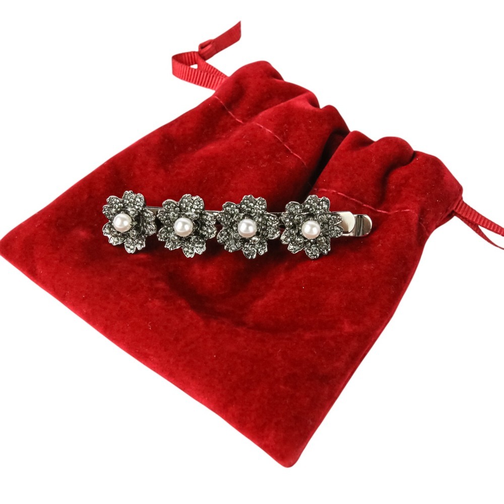 商品名:Roger Vivier ロジェヴィヴィエ パール ストーン フラワーモチーフ ヘアクリップ ヘアアクセサリー シルバーカラー