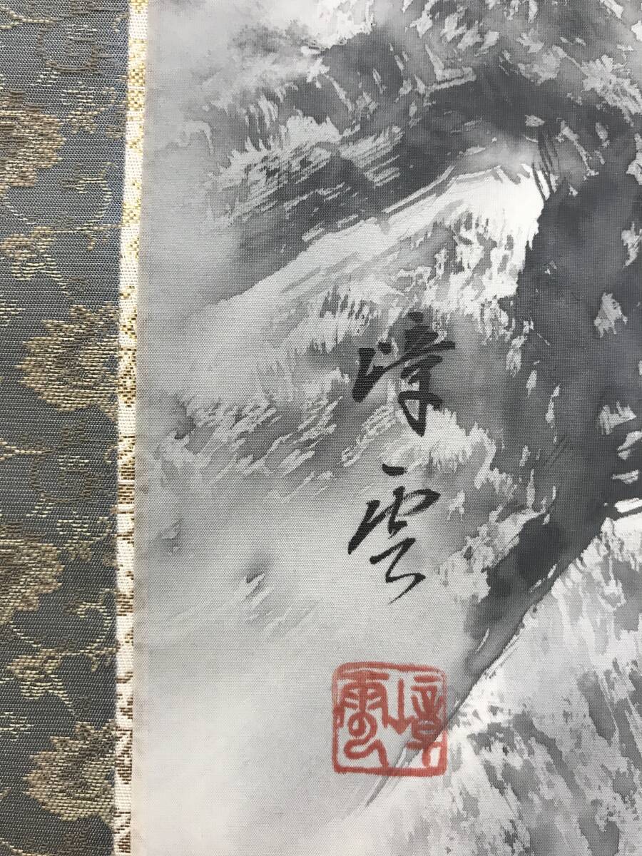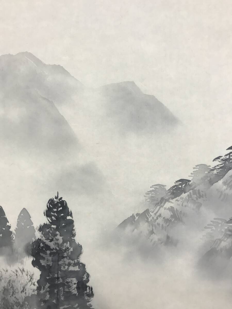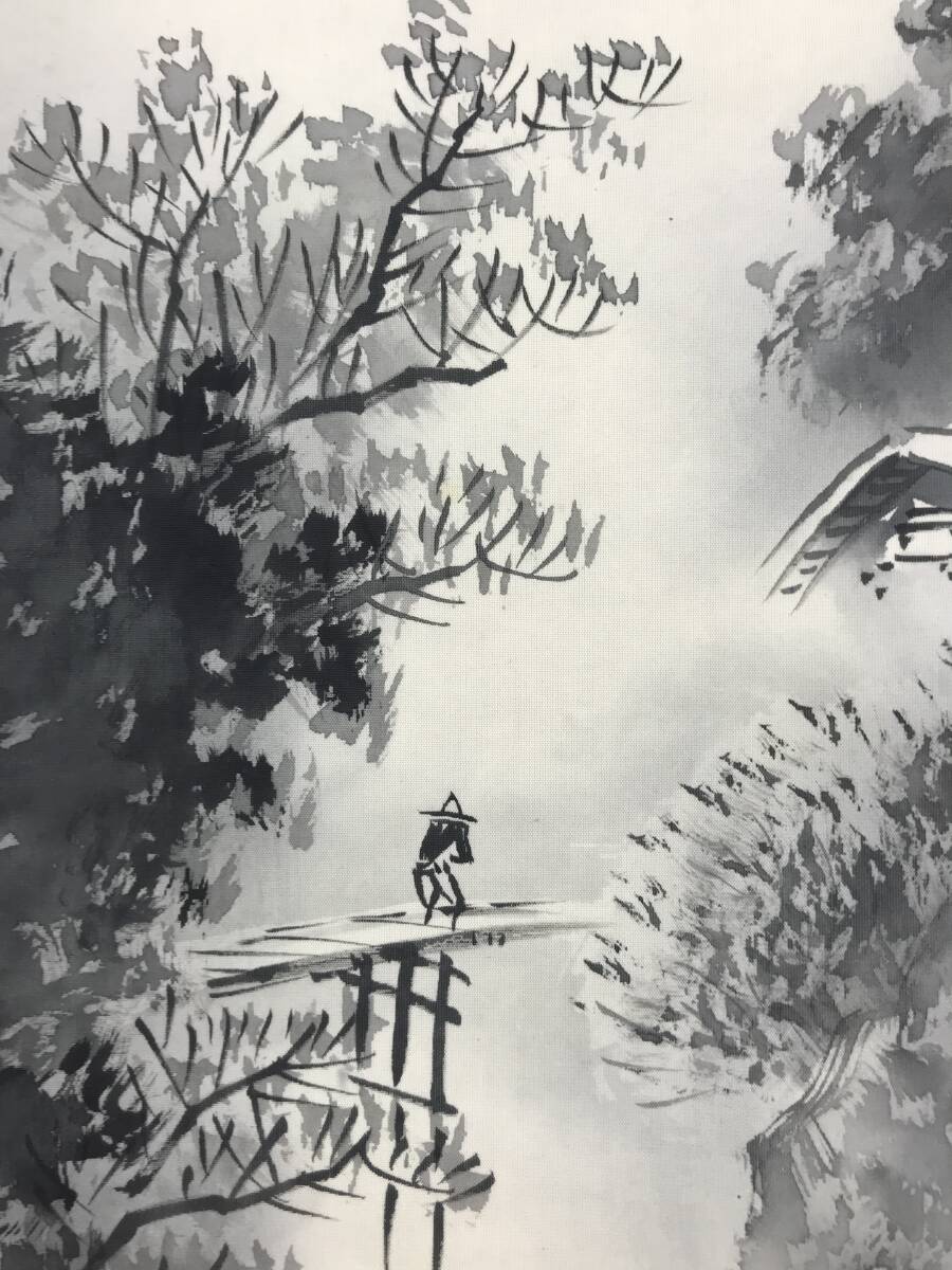 真作/名和嶂雲/水墨山水図/山水人物図/掛軸☆宝船☆AJ-269