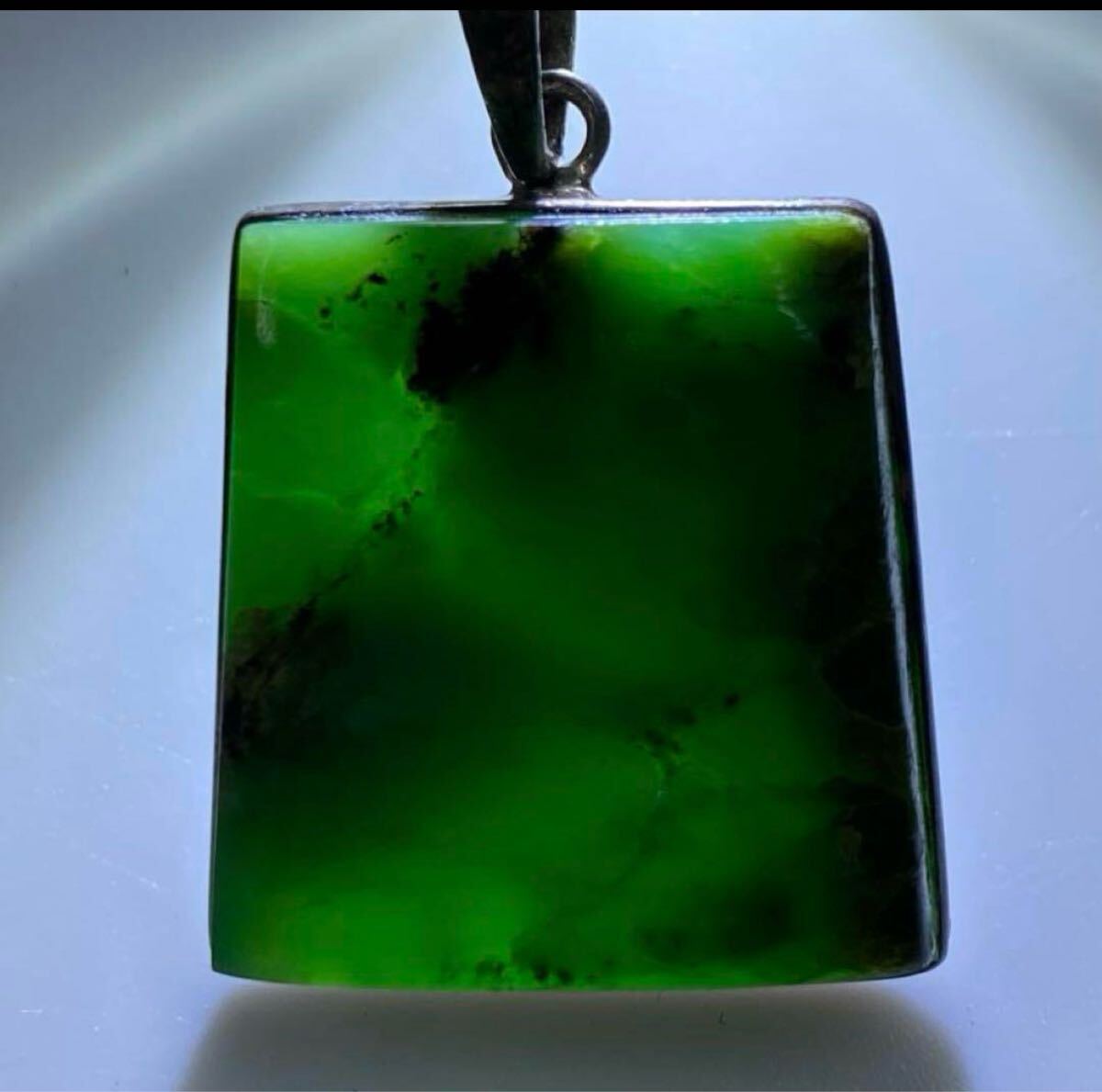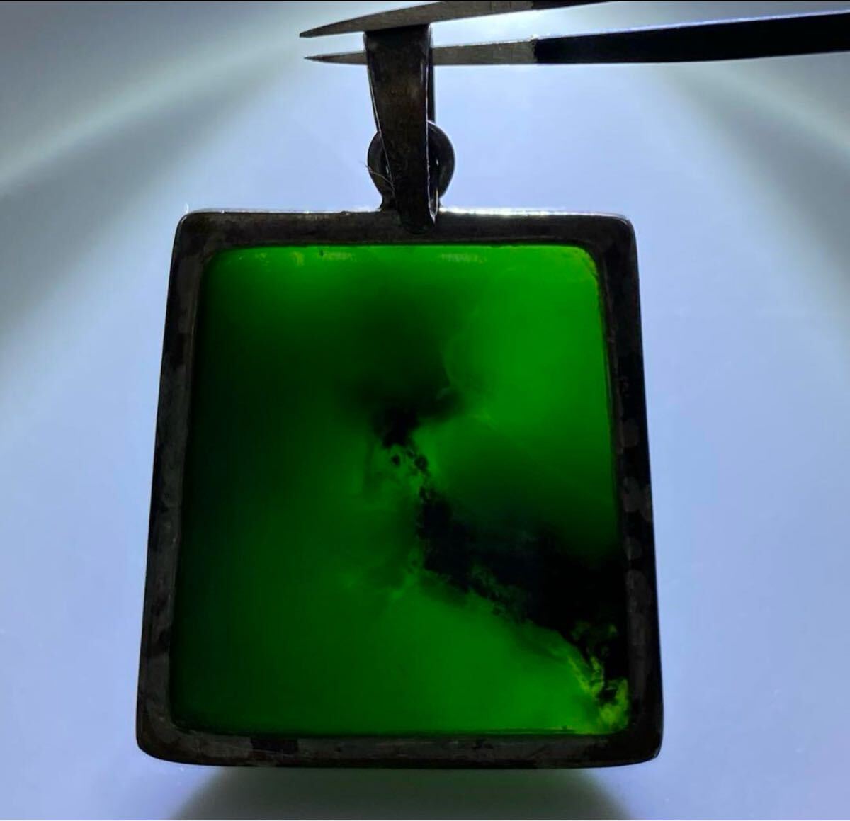 本翡翠 silverネックレストップ 時代物 タサチ 9g