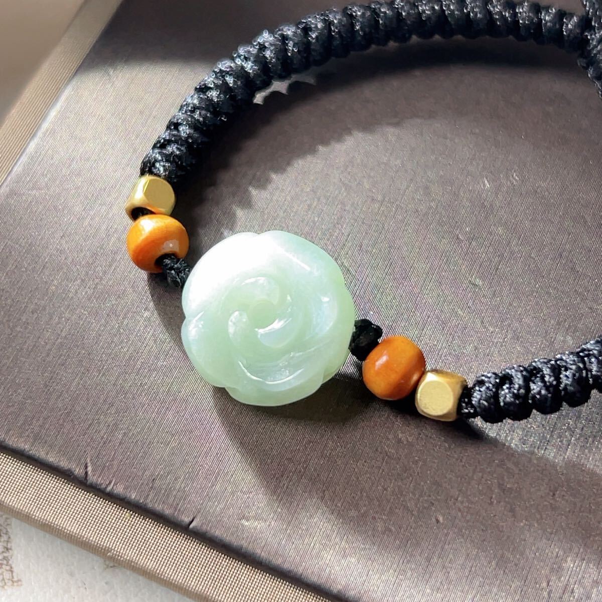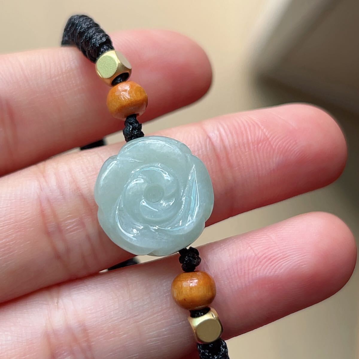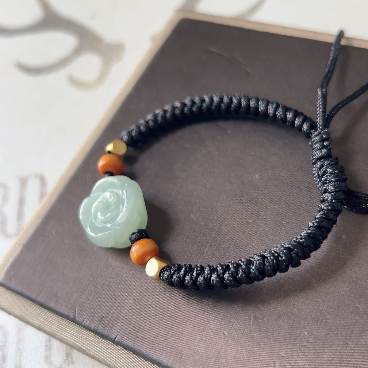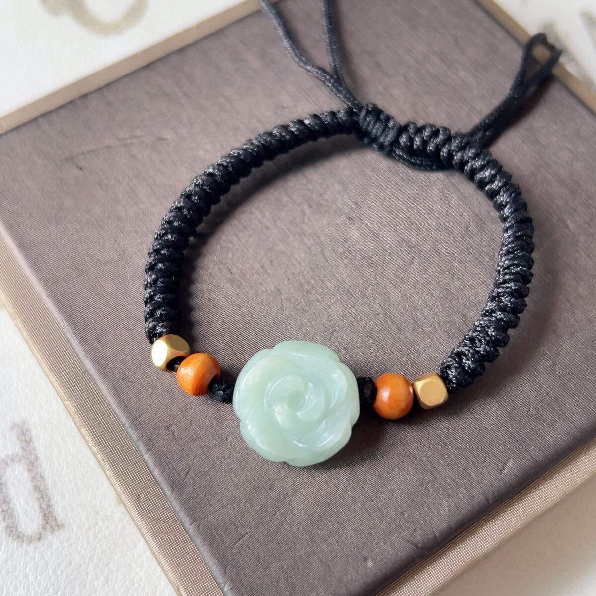 ◇ジェイド(本翡翠)◇ヒスイ◇花形◇彫刻◇パワーストーン◇ブレスレット◇巾着袋付き◇プレゼントにも 020B6151