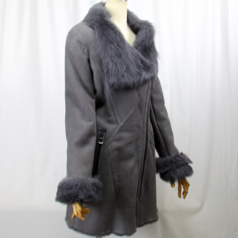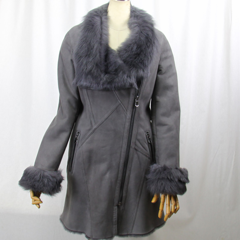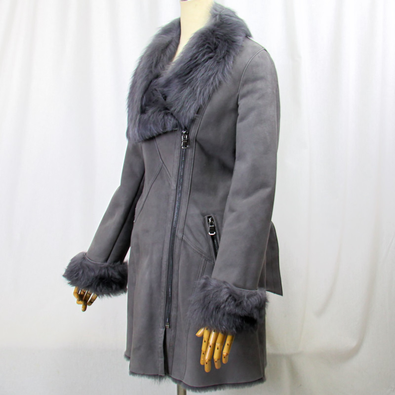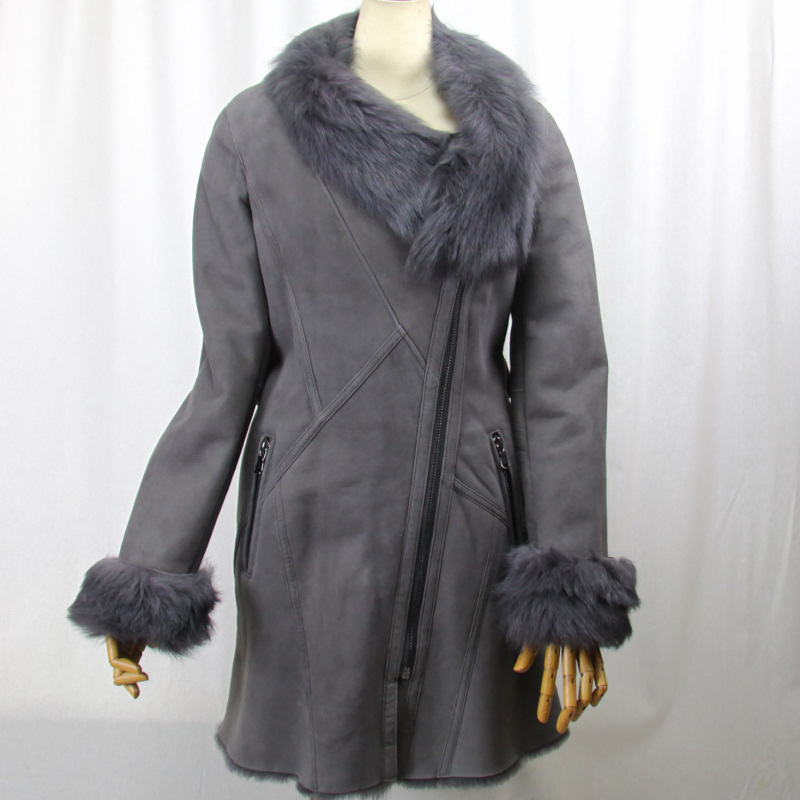 保温性に優れ、サラッとした感触の Wフェイス(一枚革)のムートンのコートです レザー面はスエード調で しっとりと滑らかな質感で、艶を抑えています 毛皮面は、密に詰まった毛が暖かで、優しい肌触りです 豪華で格好良いデザインになっております 前合わせ片衿元にファスナーを使い いろいろな衿を楽しんでいただけます カジュアルで可愛いく コーディネイトに合わせやすく 色々な場面で活躍し 普段の装いを華やかにします ★サイズ M 肩幅 : 40センチ 袖丈 : 68センチ(折曲げ可能) 胸囲 : 94センチ 丈 : 80センチ ★カラー グレー系 ★素材 ムートン ★付属 前合わせ ファスナー 片衿元 ファスナー 両サイドファスナーポケット ★注意事項 なるべく実物に近づけて 写真を撮るように心掛けていますが モニターの発色の具合によって実際のものと色が異なる場合が御座います この商品は天然の素材を使用しておりますので 実物と画像のお色及び、多少のサイズ違い 多少の傷がある場合が御座います あらかじめ御了承下さいます様よろしくお願い致します | |