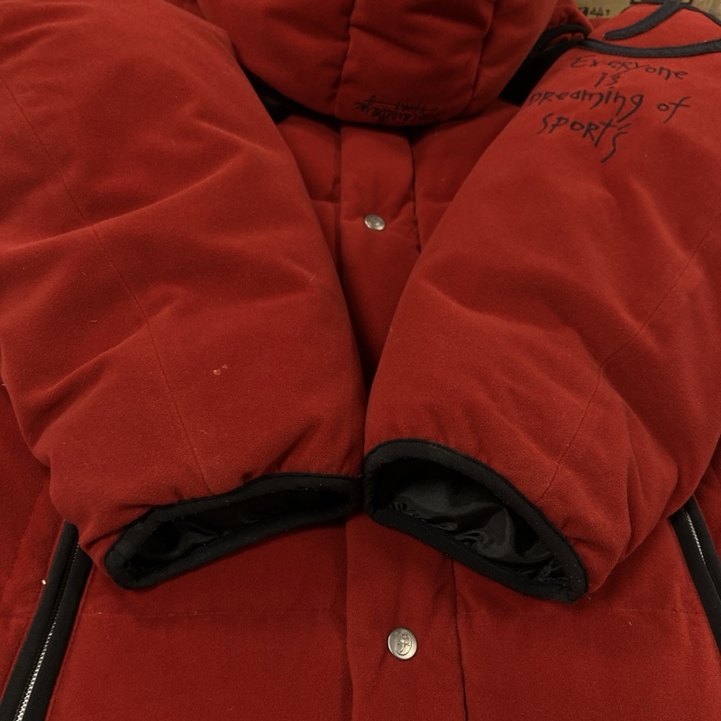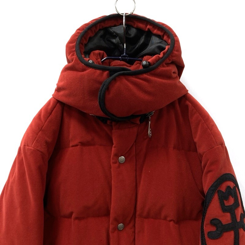 CASTELBAJAC/カステルバジャック/アームロゴ/起毛素材/フーデッドダウンジャケット/着脱式フード/脇ストレッチ素材切り替え/レッド