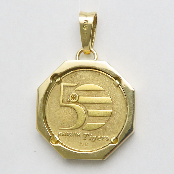 商品説明 | 阪神タイガースの希少な50周年コインが入ったペンダントトップです。ダイヤモンドも入って豪華な作りの商品です。 |