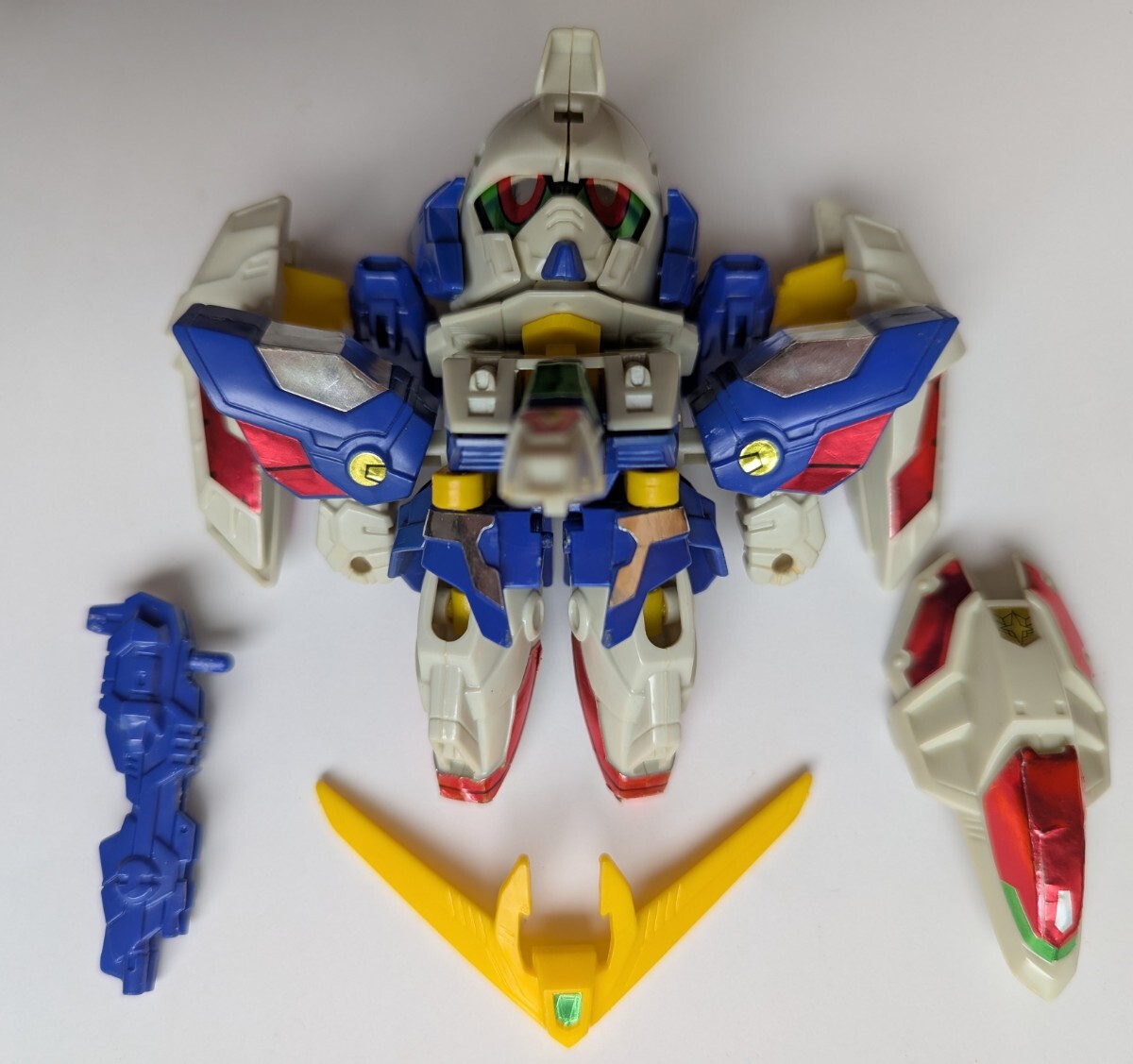 「当時物 元祖SDガンダム 0083 Gチェンジャー No.8 サイバーウイングゼロ 完成品 ジャンク 現状品」中古品(ジャンク品)になります。画像のものがすべてです。箱・説明書等はありません。状態は経年相応の並品だと思いますが、多少のキズ、傷み、経年劣化等がありますので予めご了承ください。画像を見てご理解頂ける方のみご入札お願いします。あくまでもジャンク品ですので神経質な方は入札をご遠慮ください。60サイズ以内の箱に入れて発送します。発送方法は、ゆうパック60サイズ(送料は地域によって変わります。)、レターパックプラス(送料600円)、の中からお選びください。(※代金引換は対応しておりません。)素早くお取引を行える方を希望致します。オークション終了後、5日以内に入金できる方のみご入札お願いします。落札後のキャンセルはお断りします。評価の悪い方や、連絡が遅い方は入札をご遠慮ください。落札後はノークレーム、ノーリターンでお願いします。