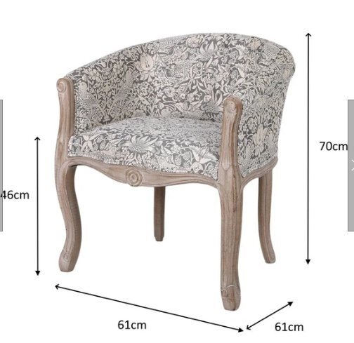こちら在庫変動しますのでご注文前に必ず在庫のお問い合わせをおねがいします。送料無料離島沖縄北海道は別途お見積りです。廃盤の場合を除き理由の如何にかかわらずキャンセルはできません。高級なグレーのいちご泥棒のジャガード織生地を使用したシャビーシック仕上げのおしゃれなアームチェアです。ボタン締めで高級感があります。小ぶりなので玄関や寝室にもおすすめ。座面の硬さは普通~硬めの間です。※組立不要、完成品です。61×61×高さ70(SH46)(cm)下記よくお読みのうえお願いします。 他サイトでも販売しておりますので、タイミングによっては完売となっている場合がございます。 入札前に在庫の確認を質問欄からお願します。 ご質問ないまま落札され、決済をされた後、在庫がなくお届けできない場合は決済手数料を引いてのご返金となります旨あらかじめご了承くださいませ。