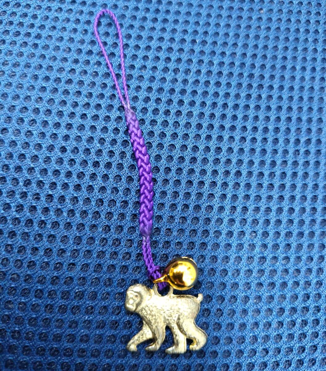 干支 申 根付 ストラップ 鈴付 財布 携帯 スマホ 鍵 アクセサリー マスコット ゴールド 金×紫 正月 縁起物 根付け 全身 さる 猿 サル 開運