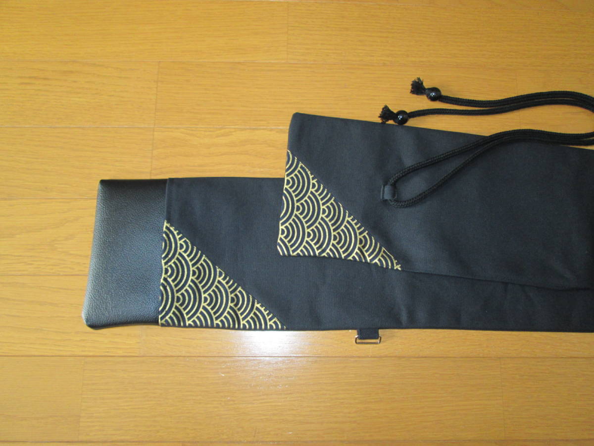 ●A-236● 送料込み! 竹刀袋(青海波 S-黒金)ショルダーベルト付き!