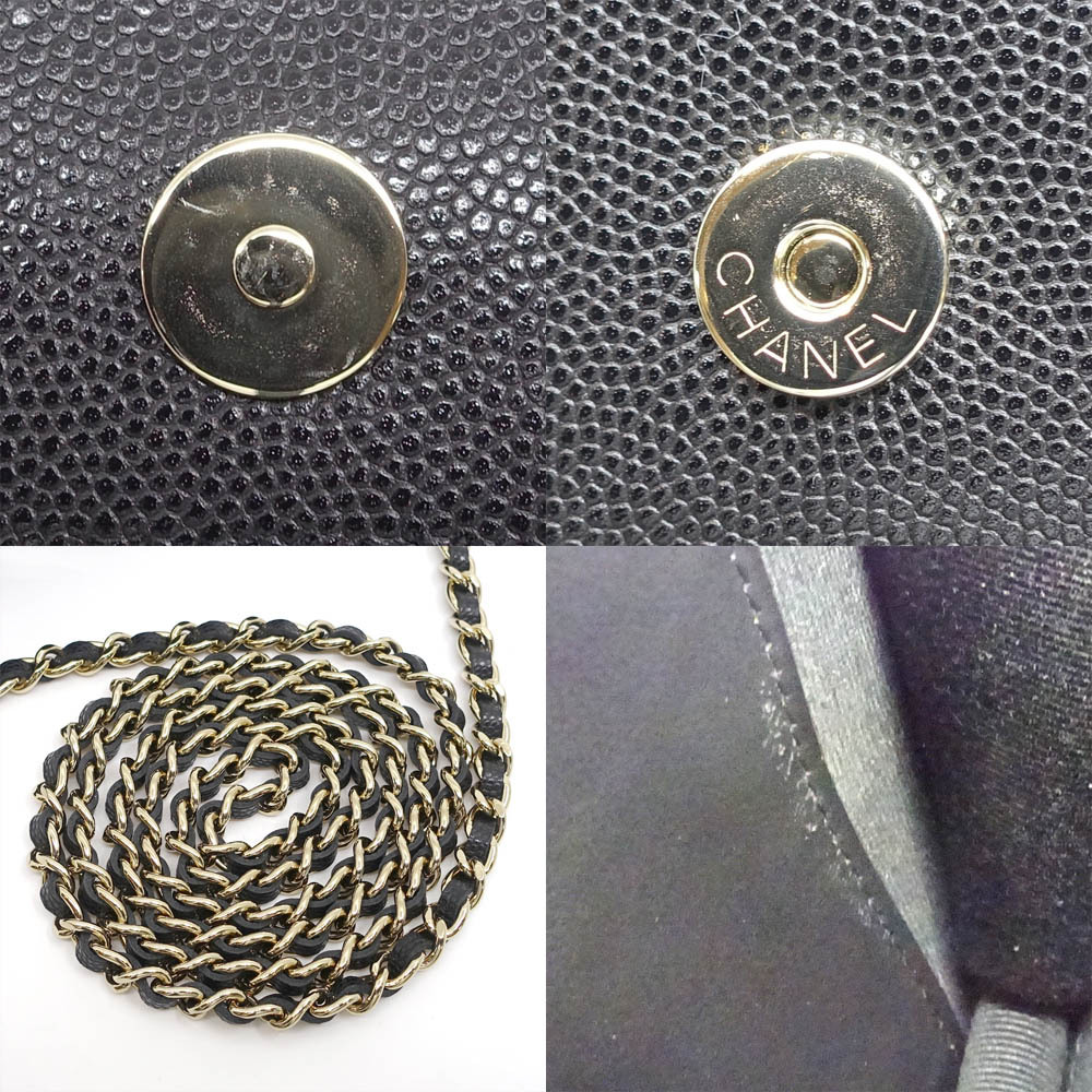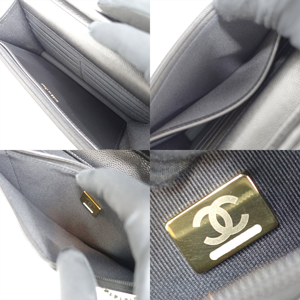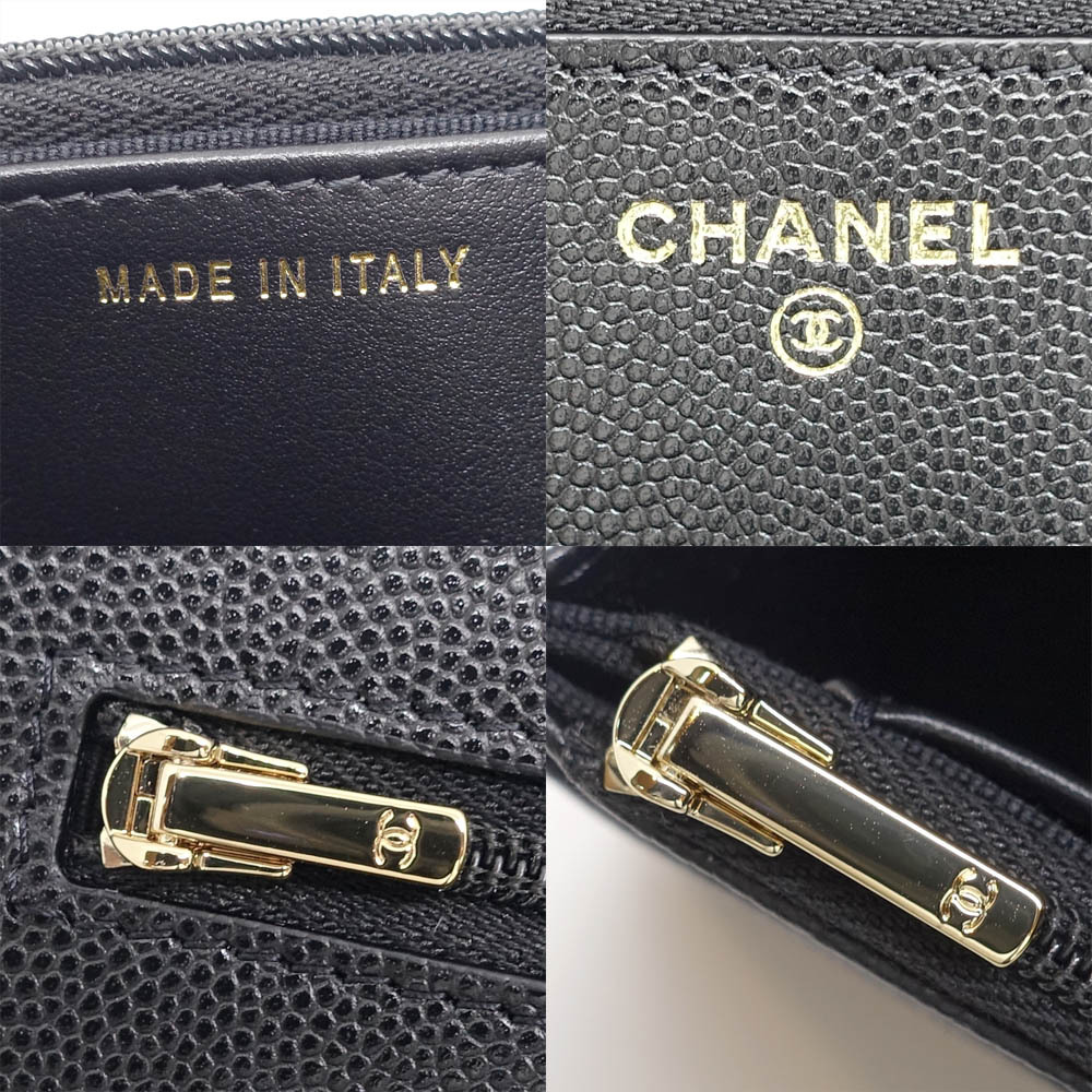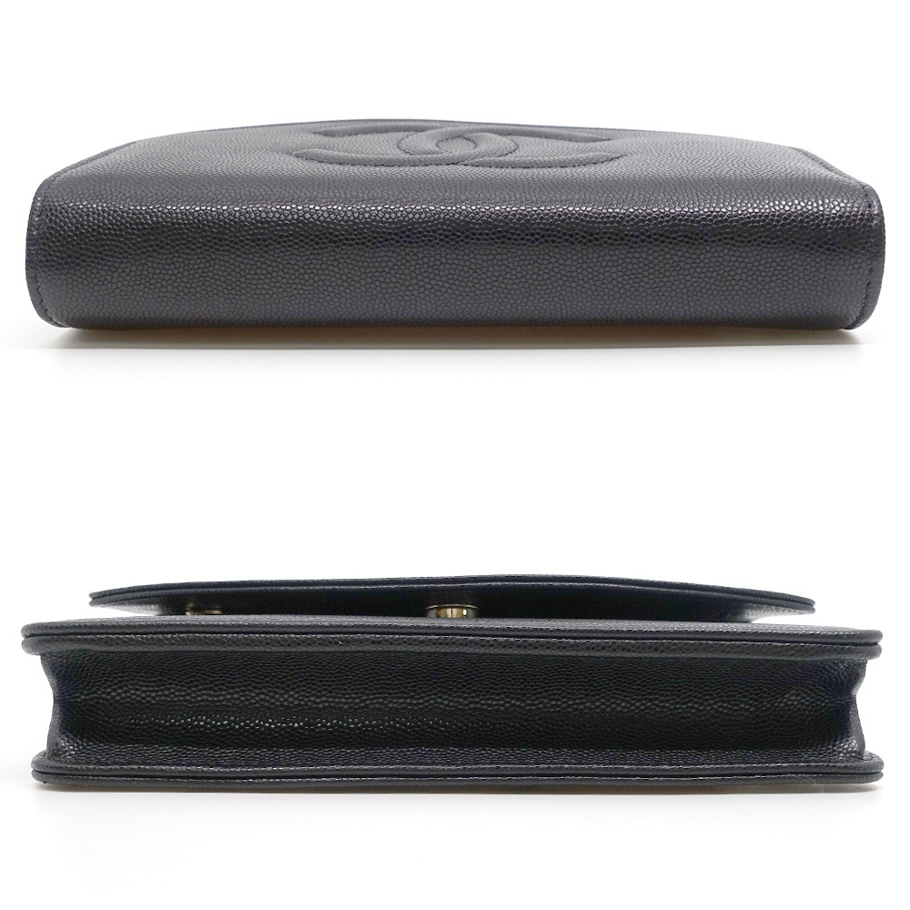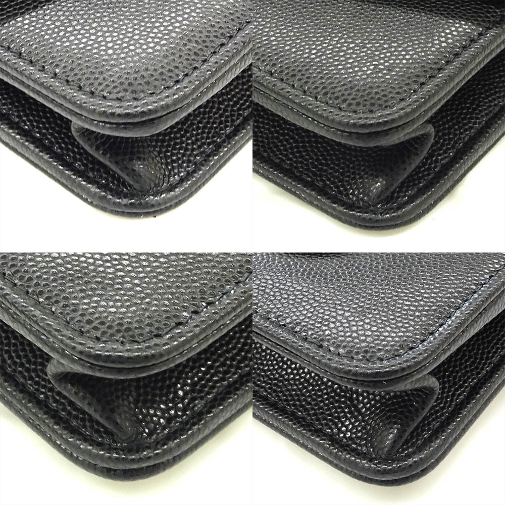 【栄】シャネル チェーンウォレット ココマーク ランダムシリアル キャビアスキン ブラック ゴールド金具 財布 女性 箱 保存袋