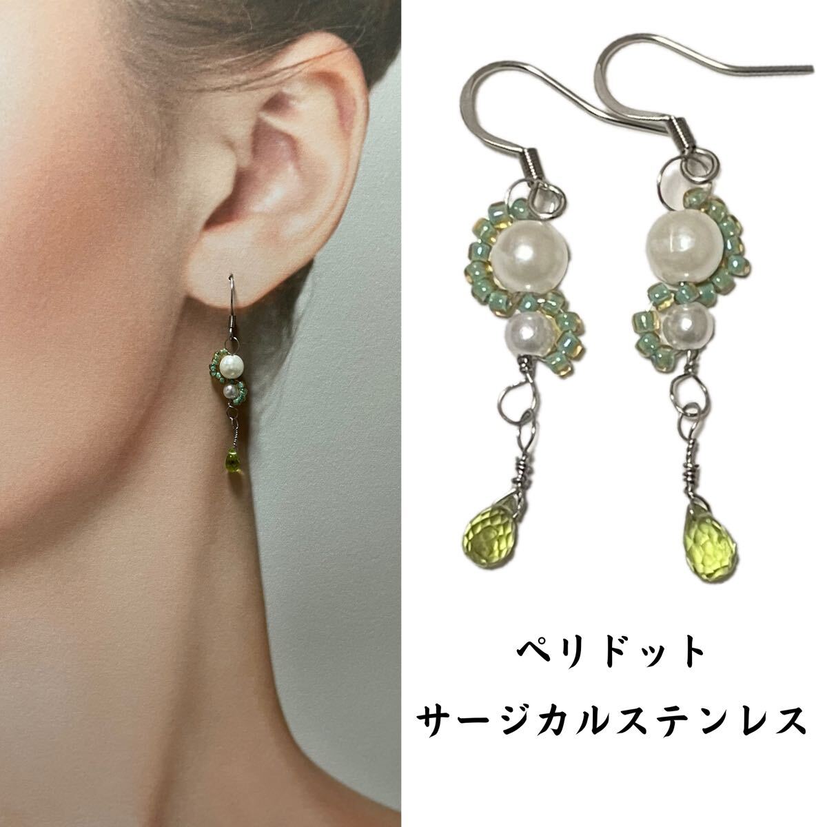 ペリドット ドロップカット 6㎜の石を使用。