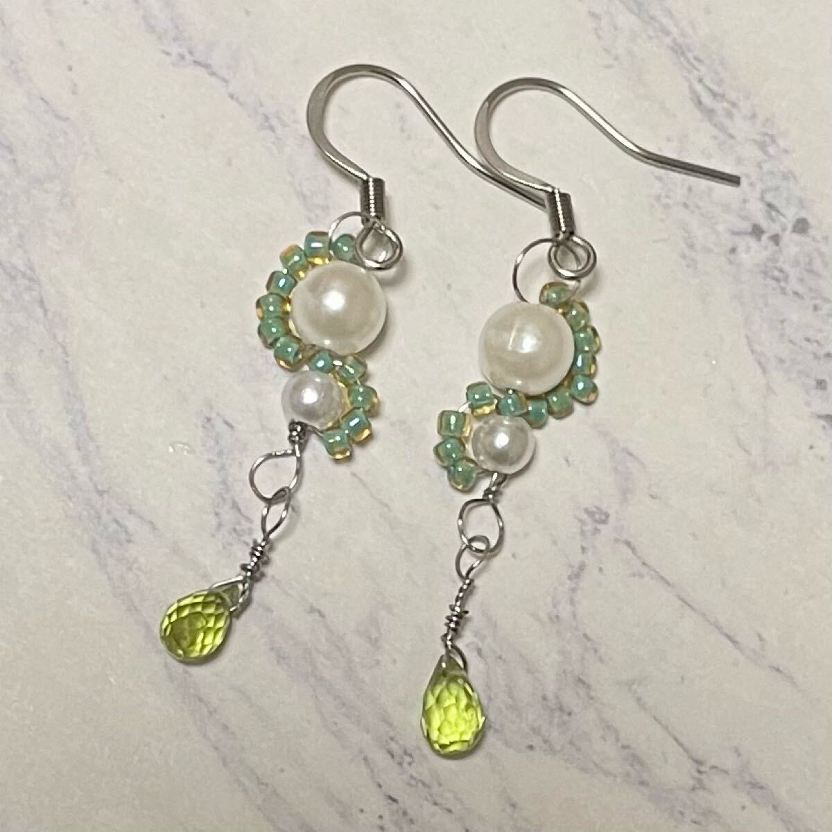 天然石とビーズのピアスです。