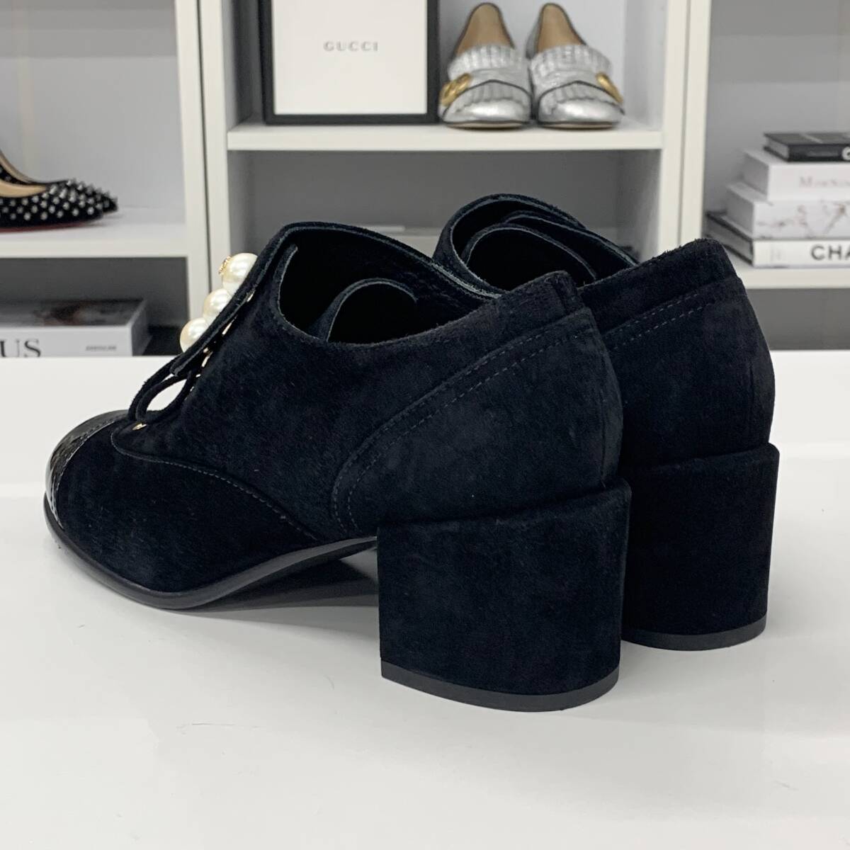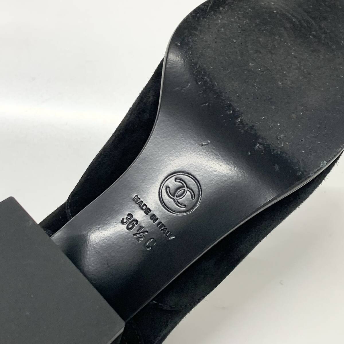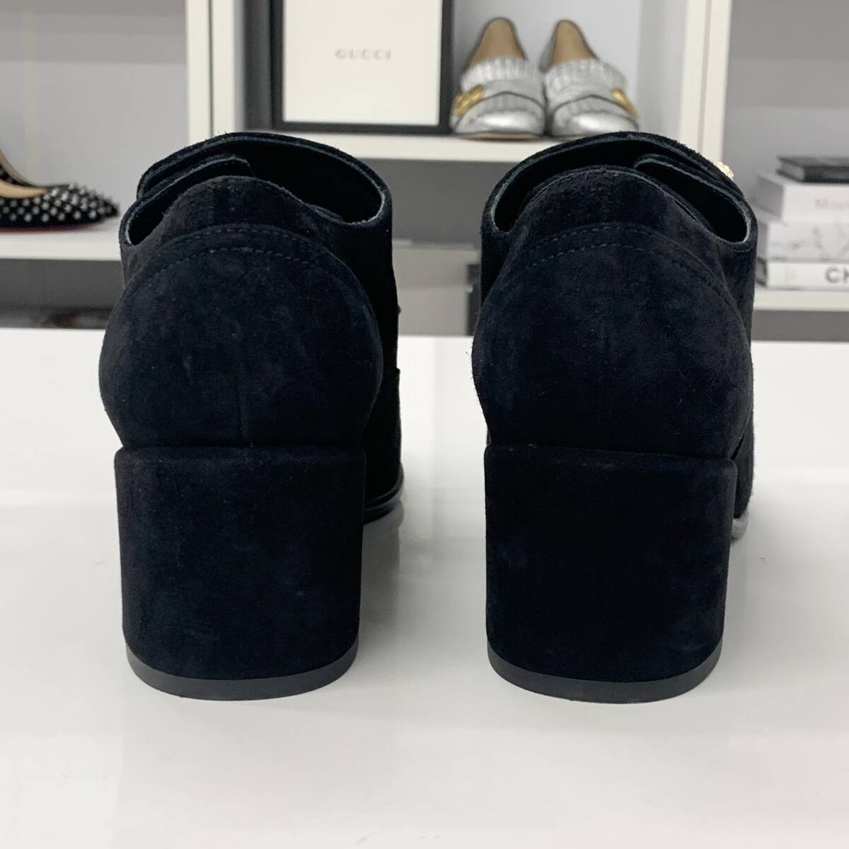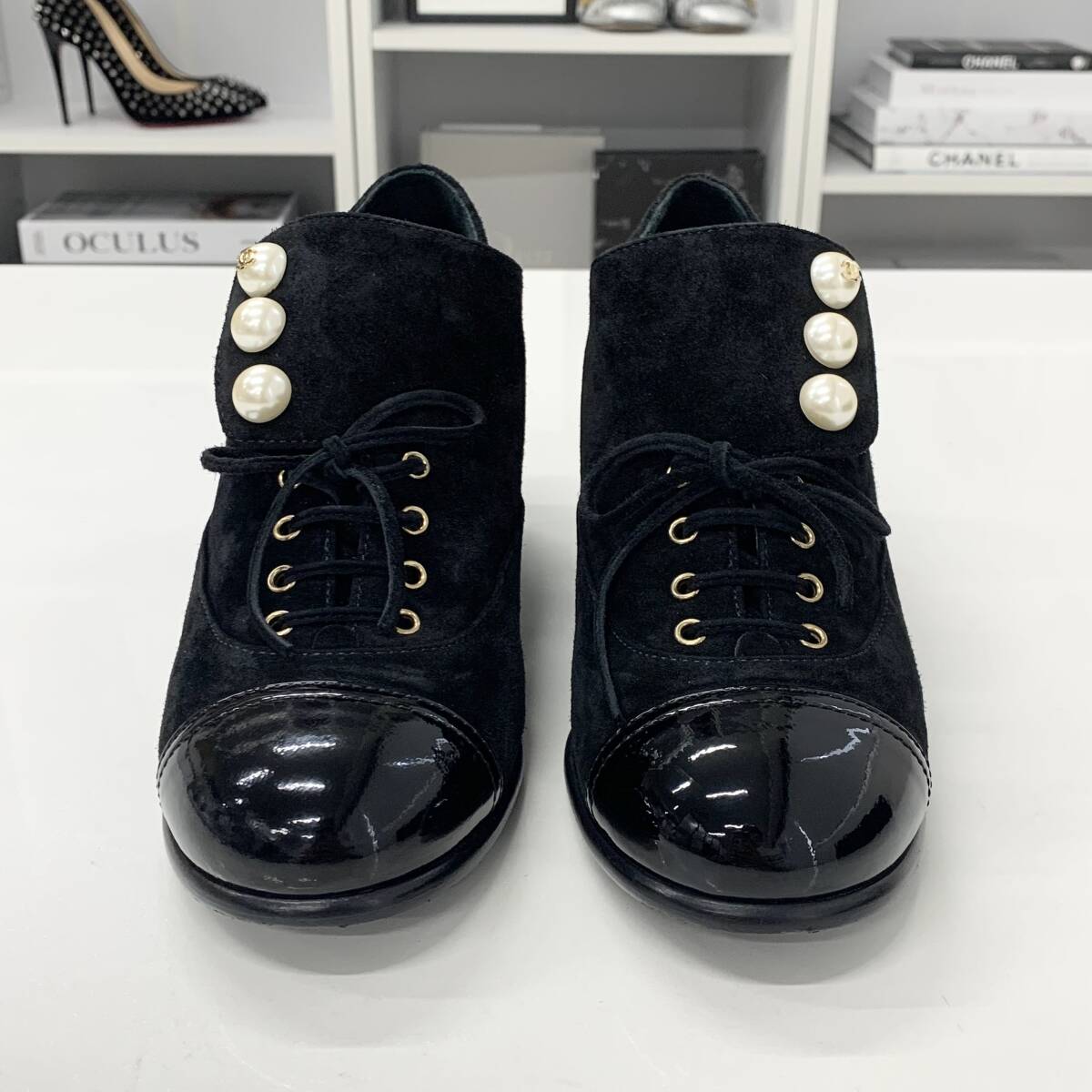 シャネル スエード パテント パール ココマーク レースアップシューズ ブラック