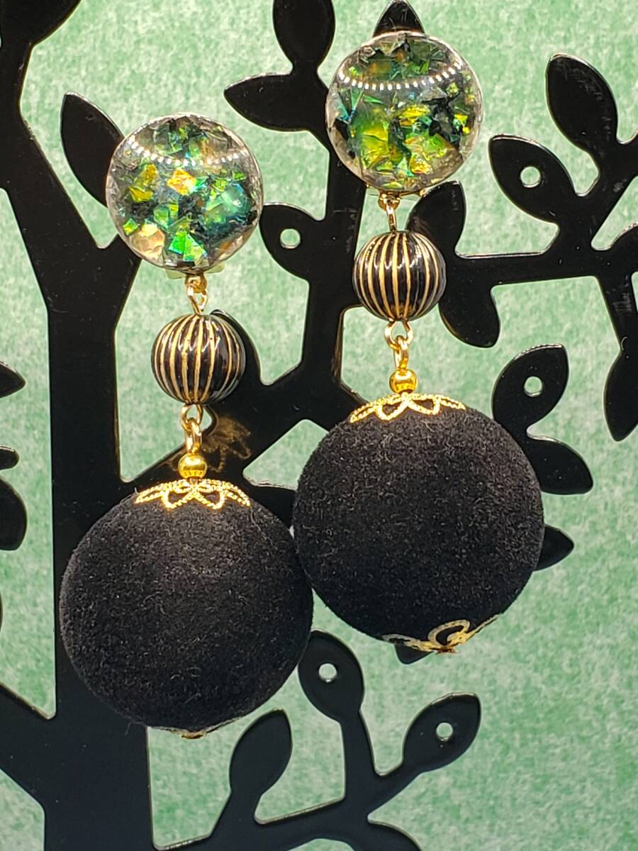 ★ハンドメイドイヤリング D382 ※金具は変更出来ません。バネ式イヤリングのみです※ シェル アンティーク風 フロッキー★
