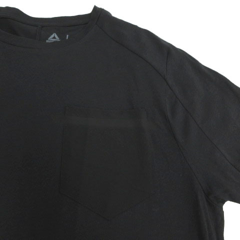 未使用品 リーボック Reebok Tシャツ EC0727 胸ポケ 半袖 ロゴ コットン ブラック 黒 L メンズ