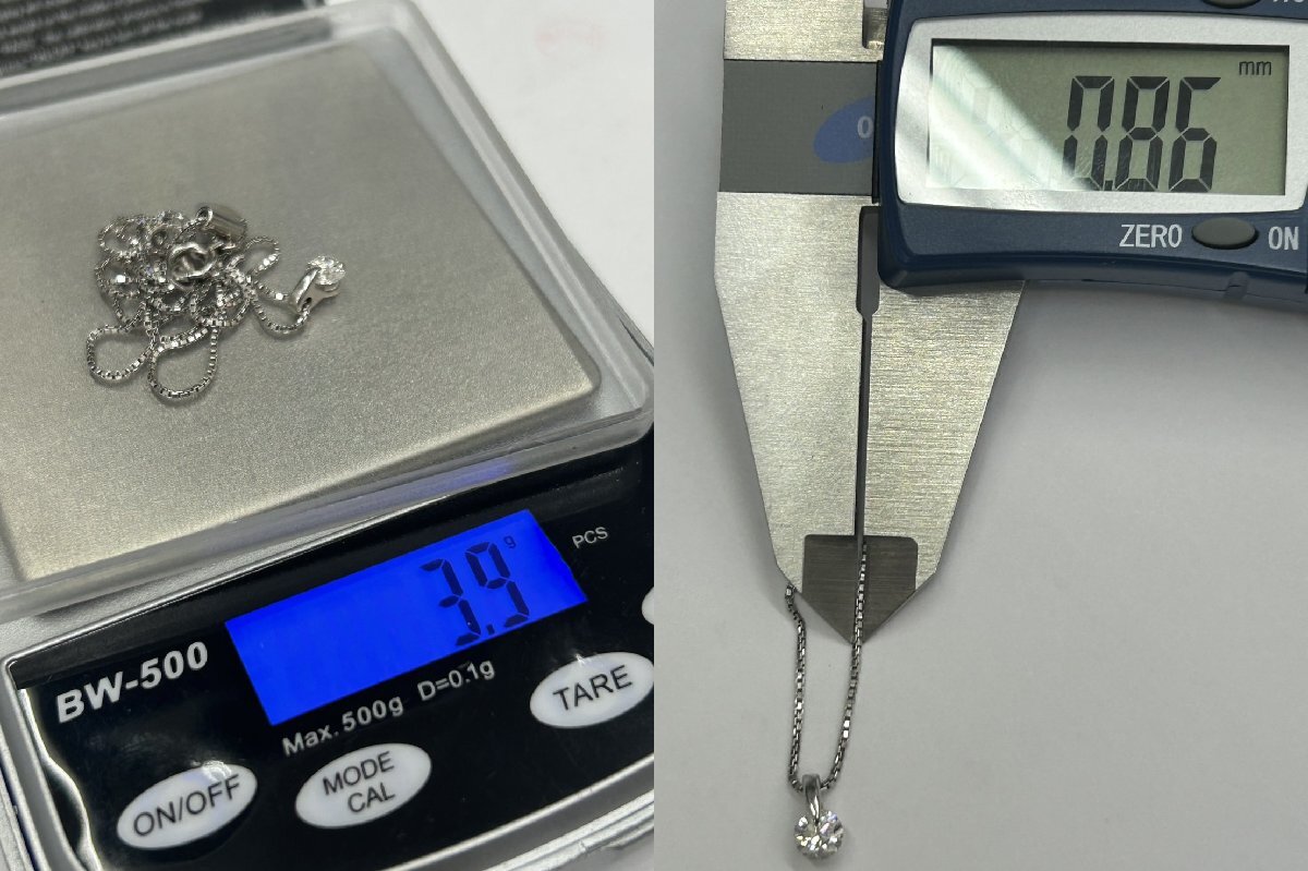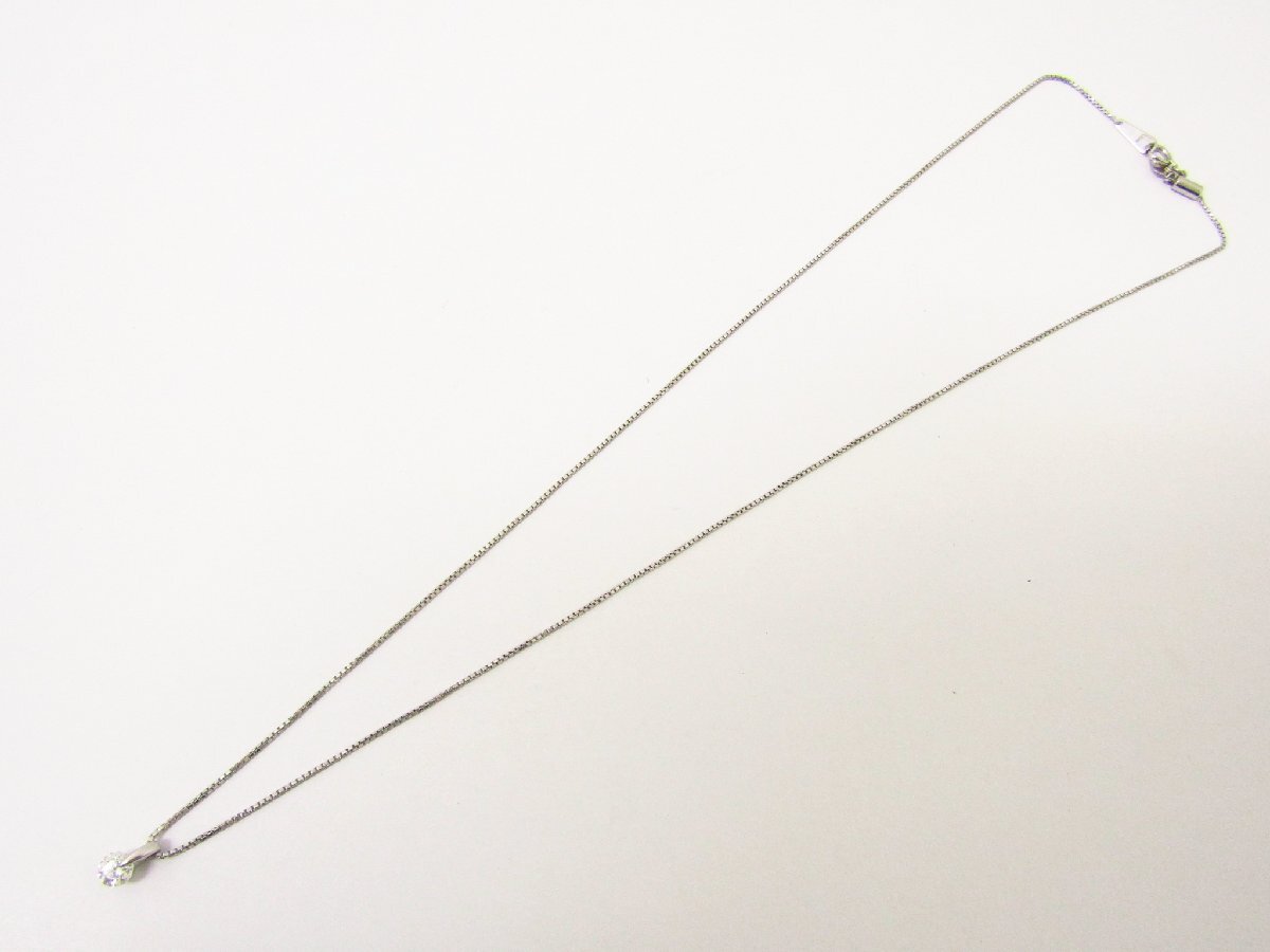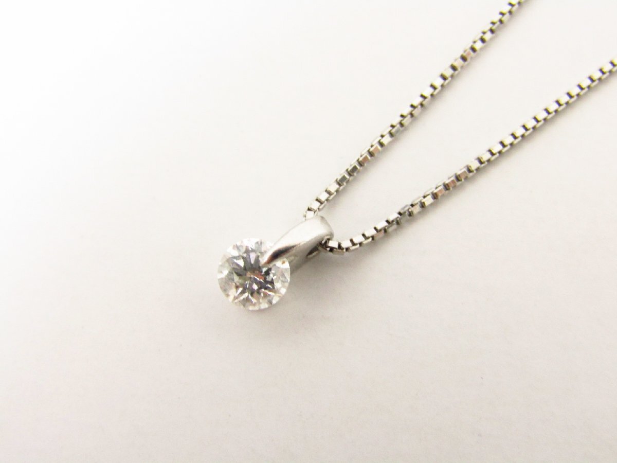 ※こちらは一般のお客様から買取をした中古商品です。 【状態】 使用に伴う擦れや擦り傷はありますが、まだまだご活用いただけます。 ダイヤモンド鑑定書に擦れ、シミ、汚れなどがございます。 (※掲載写真をご参考下さいませ。) 【サイズ】 総重量:約3.9g ネックレス長さ:約45cm(最大) アジャスター調整付き ネックレス幅:約0.86mm ダイヤモンド:0.317ct(ダイヤモンドセンサー反応有) ダイヤモンド鑑定書付き ※こちらの商品は銀行振込・コンビニ決済には対応していません。 銀行振込・コンビニ決済でのご注文の場合はキャンセルになります。ご了承下さいませ。 | |||||||