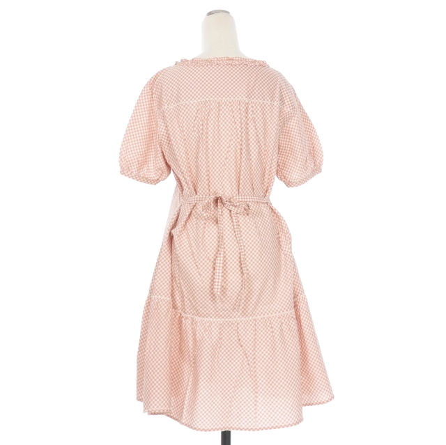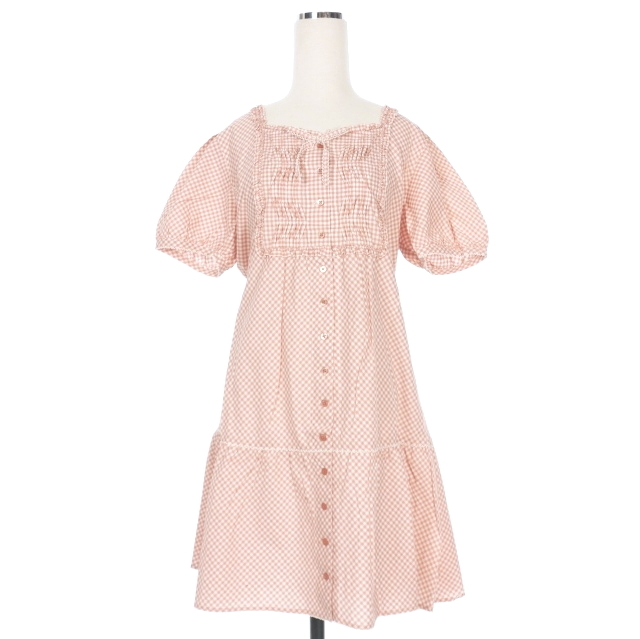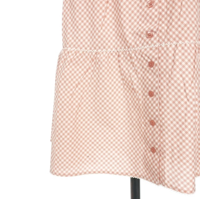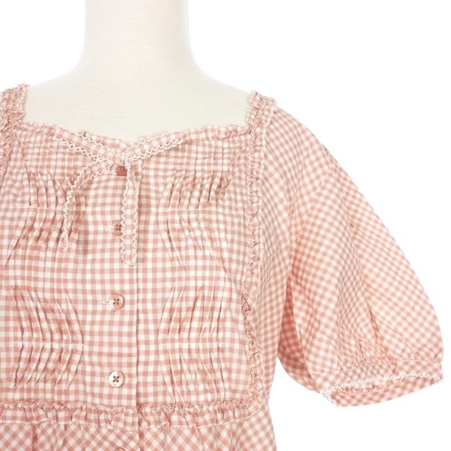 ピンクハウス PINK HOUSE ピコ加工 ギンガムチェック レース フリルシャツワンピース ドレス パフスリーブ 半袖 ピンク P010KFB06 レディース