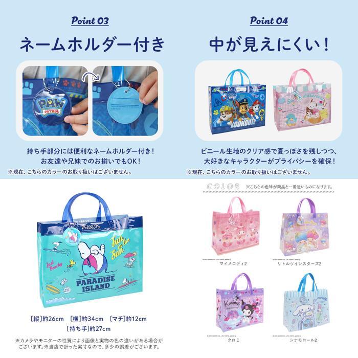 商品説明 | ・・海やプールなど水遊びのレジャーにぴったりなプールバッグが発売♪ ・【お手入れ簡単】 ・しっかりとした素材のビニールバッグ。水に濡れてもサッと拭き取れるので雨の日のお出かけバッグにしても◎ ・【マチ付き】 ・やや小さめなつくりながらもマチがあるので、水着やゴーグル、バスタオルも入るサイズ感♪ ・【プライバシーも確保】 ・前後は中が見えにくいプリント柄。裏面に名前が書けるネームホルダー付きでお子さまも安心! ・【かわいいイラスト】 ・元気いっぱいのキッズにぴったり!人気キャラクターのイラストがとってもキュート! |