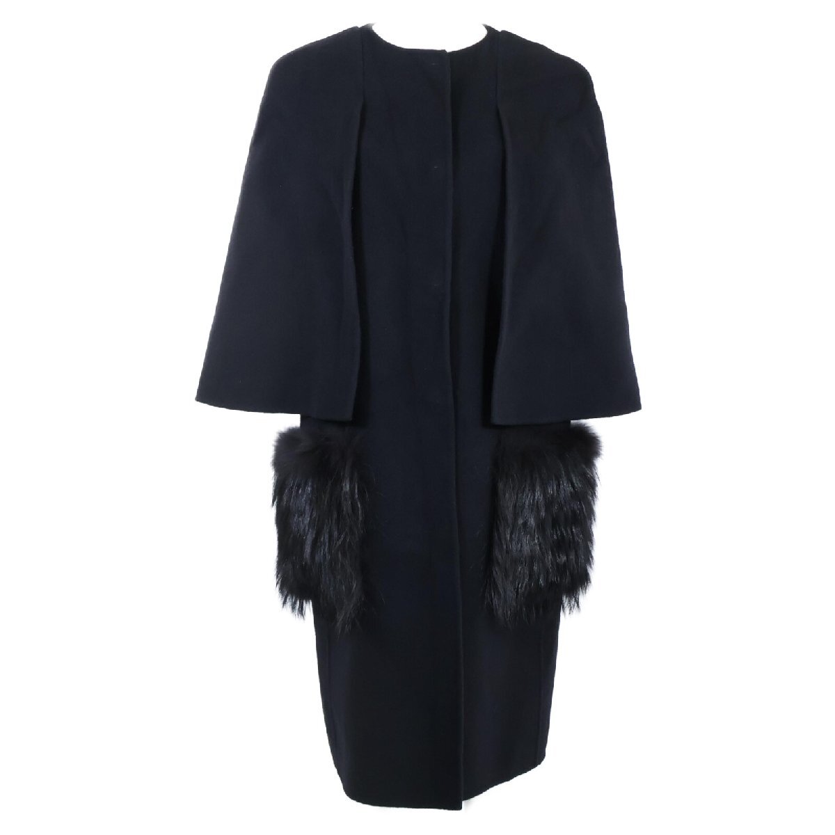 美品/国内正規 FENDI フェンディ FF8657 A5G0 フォックスファーポケット ケープ コート 40 ブラック レディース