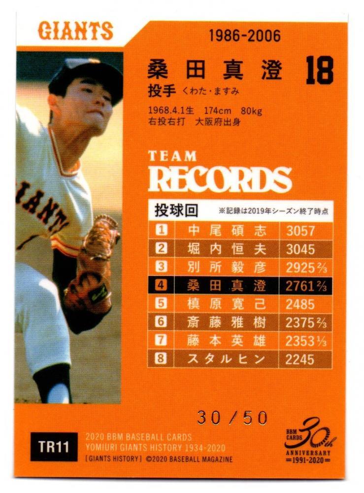 【桑田真澄】2020 BBM 読売ジャイアンツヒストリー 1934-2020 / 金紙+ホロPP版TEAM RECORDSインサートカード[30/50]