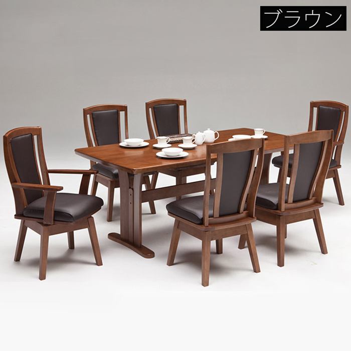 ダイニングテーブルセット 6人掛け 6人用 ハイバック 回転イス 食卓テーブルセット モダン ダイニング7点セット ブラウン