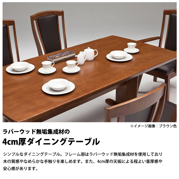 特  徴木の質感が感じ取れる4cm厚のラバーウッド無垢集成材テーブルと、くつろげるハイバック回転チェアのダイニングテーブル7点セット。ナチュラル・ブラウンの2色。