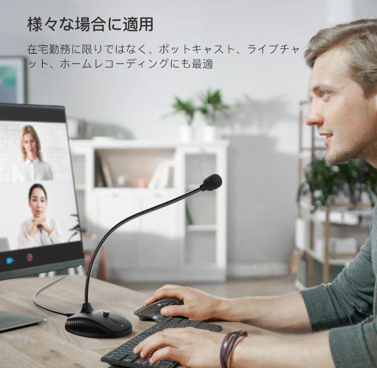 [スムーズな録音] 柔軟なグースネックデザインにより、PC用のUSBマイクを自分のレベルに調整できます。カーディオイドポーラーパターンにより、音声に合わせた応答により、音声の明瞭度を最大化し、フィードバックの機会を減らします。会議やプレゼンテーションアプリケーションに適したソリューションで、Zoomビデオ会議ソフトウェア内で聴く能力を向上させます。 [USBプラグ&プレイ] グースネックは最大12インチ(32.5cm)の長さと使いやすいマイクの位置を提供します。 USBカーディオイドマイクをUSBコネクタ経由でノートパソコンやPCに接続すると、録音、Skype、Discordでのチャット、コンピューターオーディオのニーズをすべて満たします。 パソコンに直接録画できます。 【スタイリッシュなデザイン】ズームミーティング用のグースネックコンピューターマイクは、スピーカーで調整でき、背の高い人や背の低い人などに対応できます。 薄型で魅力的なグースネックデザインで、とてもきれいな外観です。 曲げるYouTubeマイクによる正確な位置決めは、表彰台、礼拝所、学校、会議、プレゼンテーションアプリケーションに適したソリューションです。 [音量ノブ&ミュートボタン] コンデンサーマイクの入力音量を簡単に調整でき、LEDライト付きのサイレントミュートスイッチは、コンピューター録音マイクがアクティブになっていることを示します。 テーブルやデスクに滑り止めゴムマウントが付いた頑丈な重みのあるベースは、医療/法的報告や会議用の長いグースネックをしっかりとサポートします。 USBマイクは、ズームミーティング、ポッドキャスト、ライブチャット、IP通信、ボーカル録音に適しています。 [頑丈な構造] TwitchストリームレコーディングボーカルUSBマイク。調節可能な金属製グースネックと頑丈なABSベースにより、安定した使用が可能です。 取り外し不可能なプレミアム6.56フィート(2メートル)のUSBケーブル、ユーザーマニュアル、フレンドリーな技術サポート。