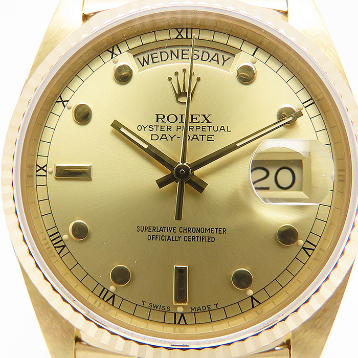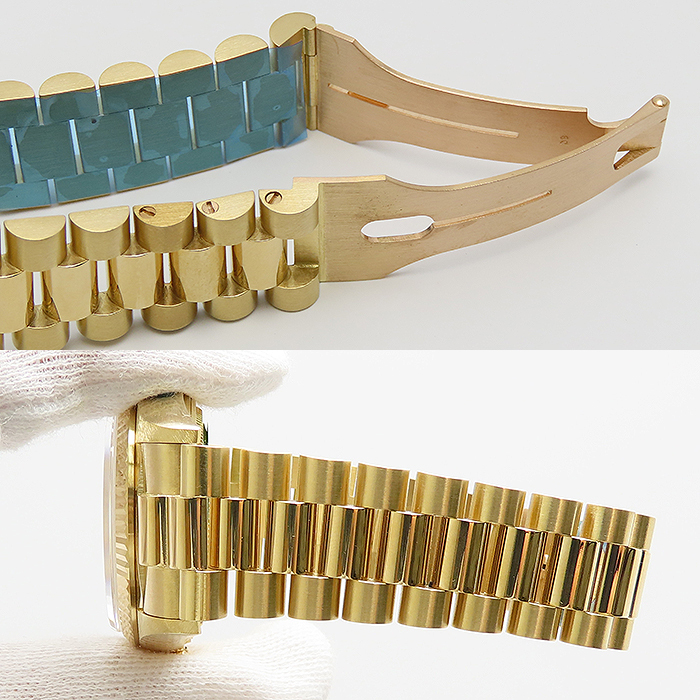 | 備考 | 弊社指定の時計業者にて、OH(分解掃除)ポリッシュ済みです。 ※時計本来のコンディションを保つため、軽めのポリッシュを行っております。 9番 1985年のモデルです。 ロレックスの数あるモデルの中でも、金・プラチナを使用した非常にラグジュアリーなモデルで、日付のほかに文字盤上部の曜日表記が特徴的な「デイデイト」です。こちらの商品はインデックスが金の丸い形になっており、その見た目から通称ピンボールと呼ばれる非常に希少なダイヤルです。1985年製の商品で、状態の良いものが少ない、いわゆるヴィンテージウォッチの部類にはなりますが、こちらは機械・ケース・ブレス共にコンディションの良い希少な商品となります。こちらの商品は、送料無料です! ※30万円以上の商品は、代金引換サービスをご利用いただけません。万が一、代金引換サービスにてご注文を頂きました場合は、キャンセルの処理をさせていただきます。予めご了承ください。 | ||