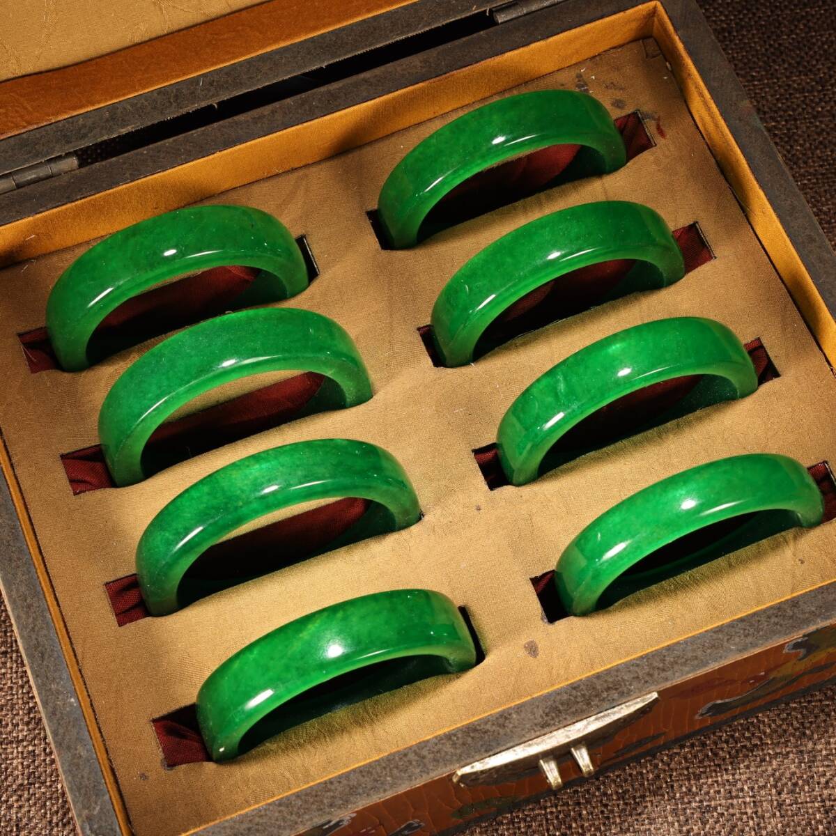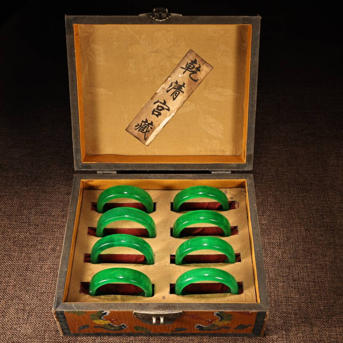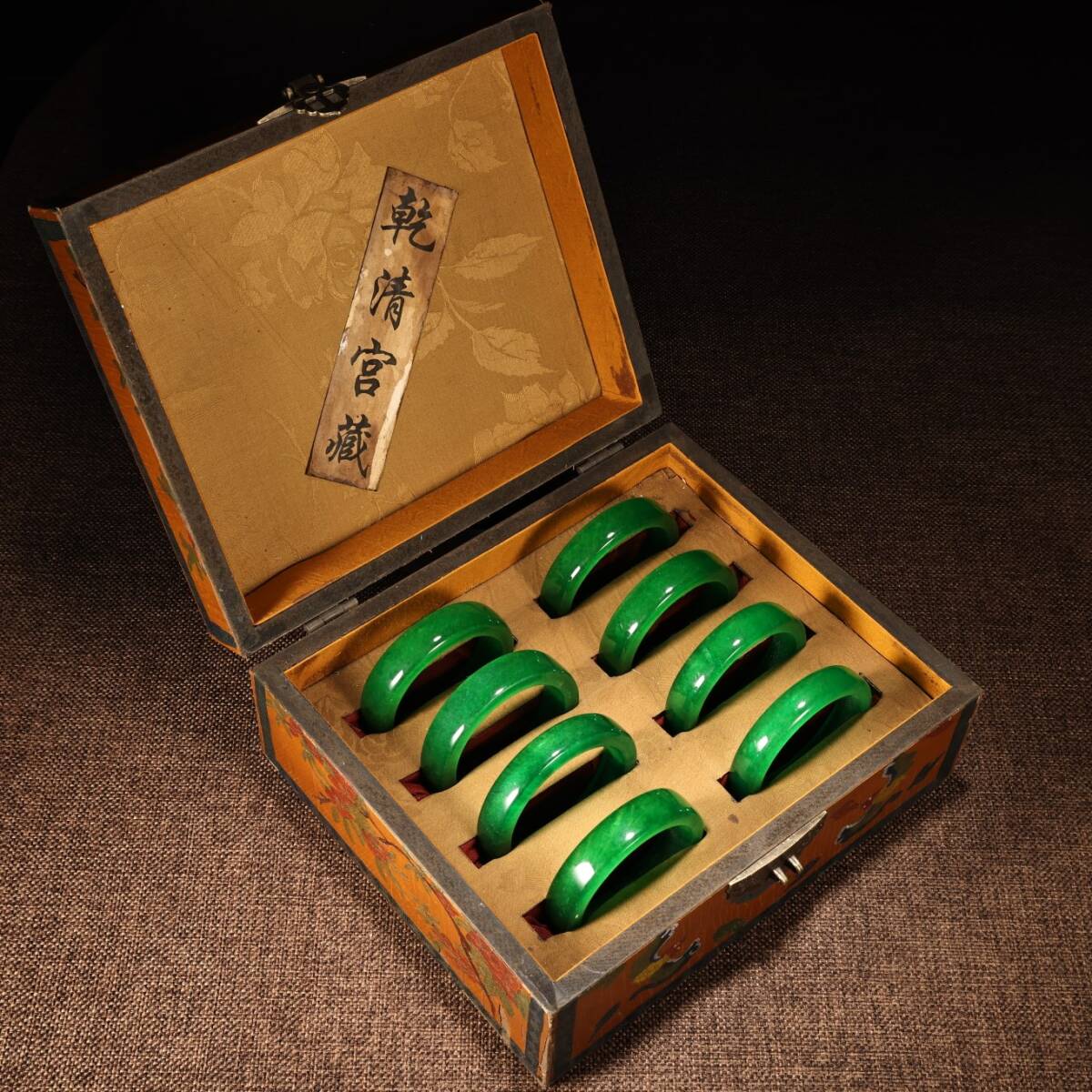 「清時代 乾清宮藏 高氷 翡翠彫 帝王緑 腕輪 輪胎形 漆盒」置物擺件 飾り物 時代物 古董品 骨董 旧家藏出 唐物 中国古玩 古美術品