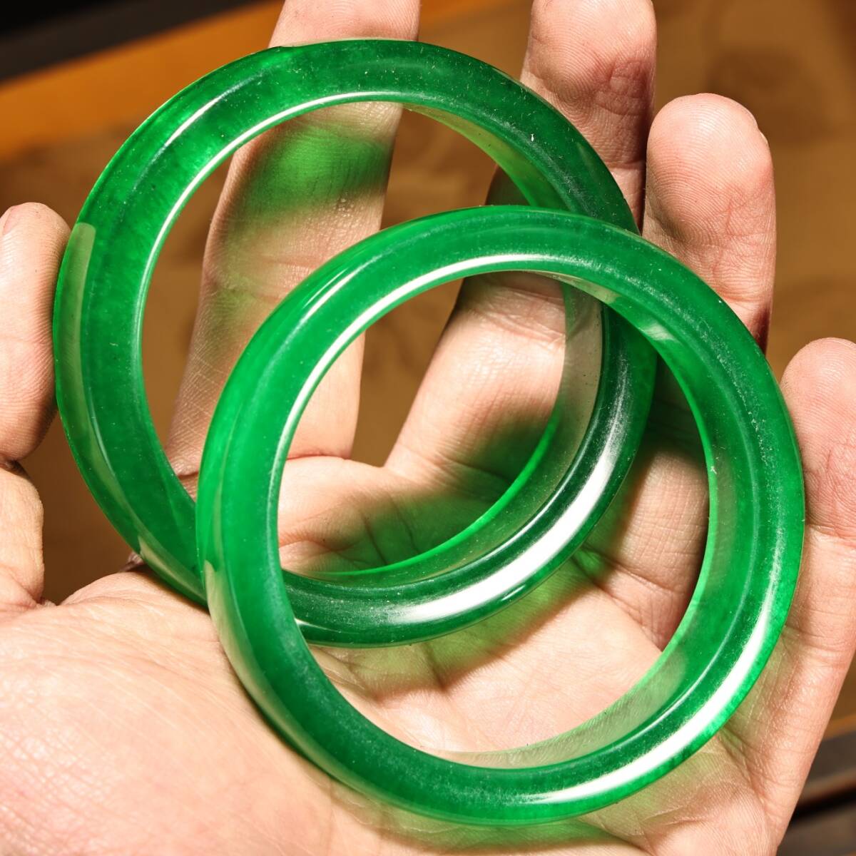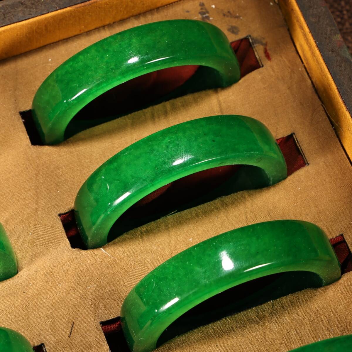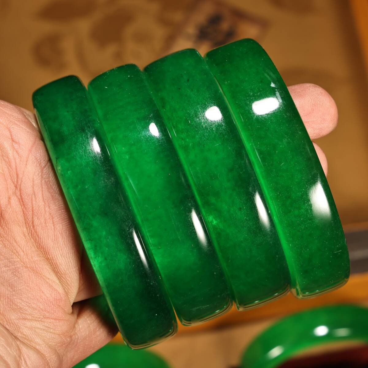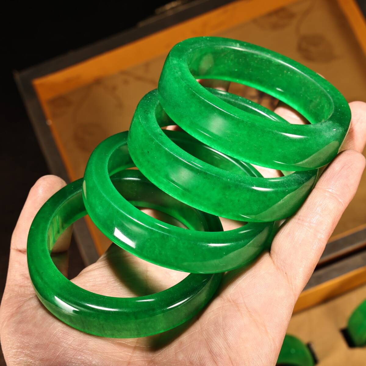 「清時代 乾清宮藏 高氷 翡翠彫 帝王緑 腕輪 輪胎形 漆盒」置物擺件 飾り物 時代物 古董品 骨董 旧家藏出 唐物 中国古玩 古美術品