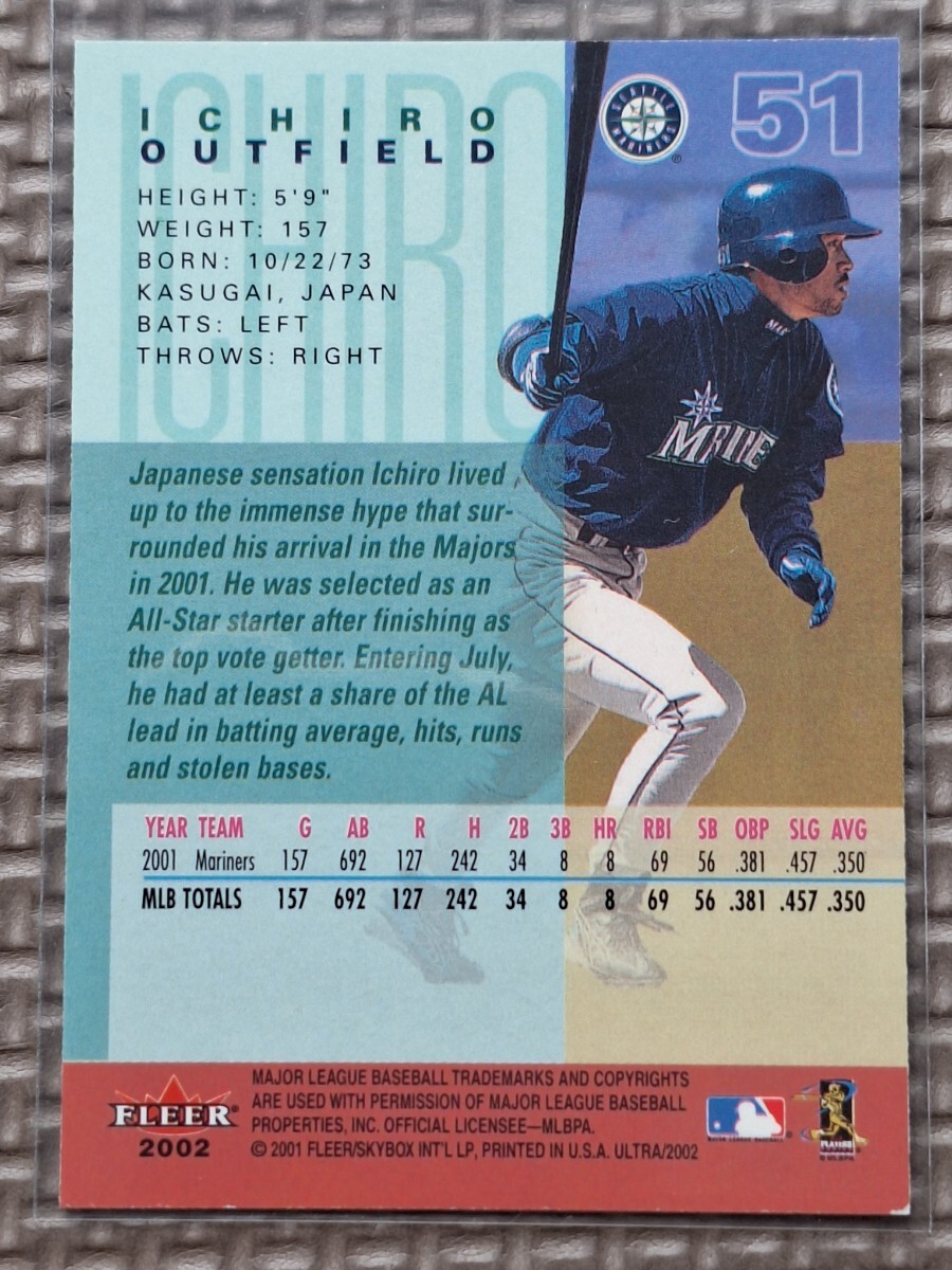 2002 Fleer Ultra #51 ICHIRO SUZUKI Seattle Mariners Orix BlueWave