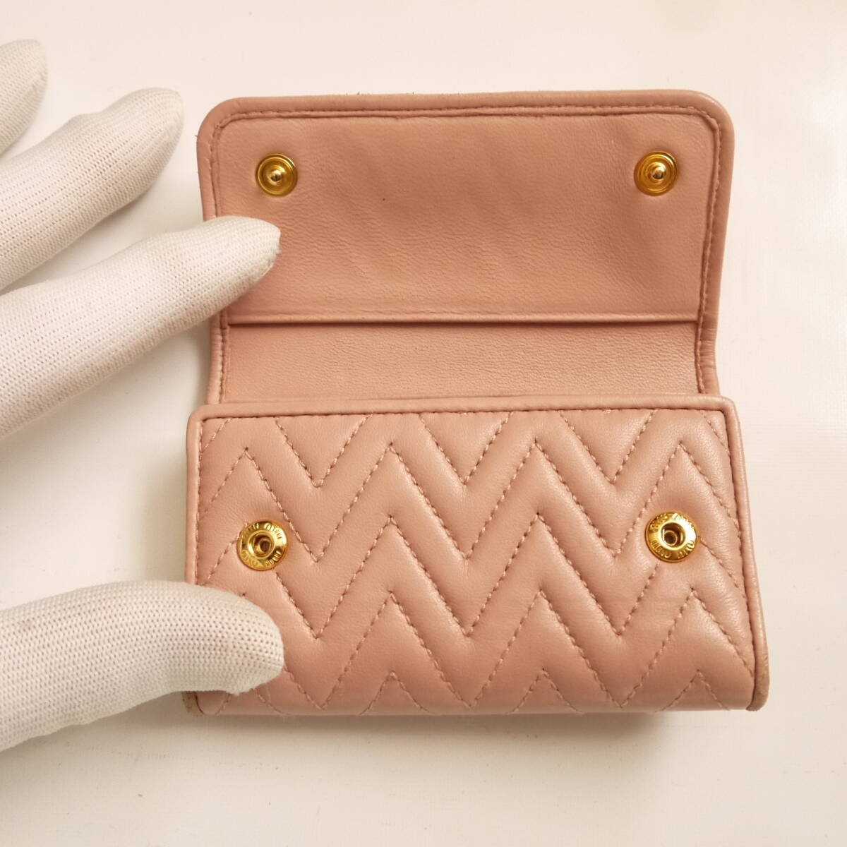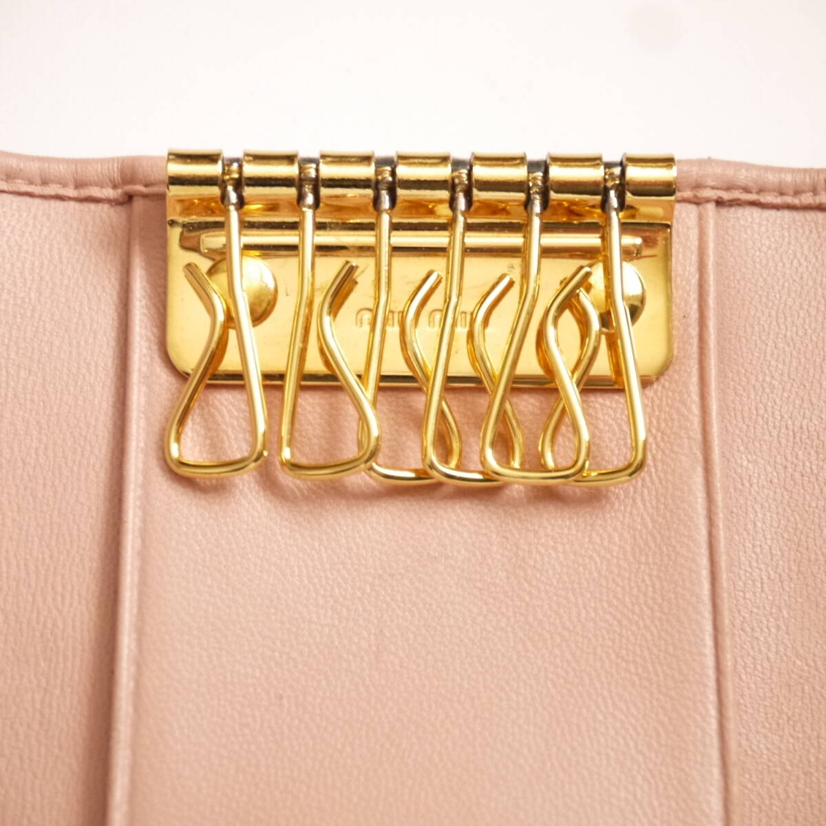 ■   miumiu   ■   ミュウミュウ   ■ ギャザー レザー製 デザイン ・ 6連 キーケース ■ さくら色 ピンク系 × ゴールド金具 ■ 230241E028W ■ 完売! 激レア!               【  ゆうパケット (匿名配送) ・ 送料無料  】