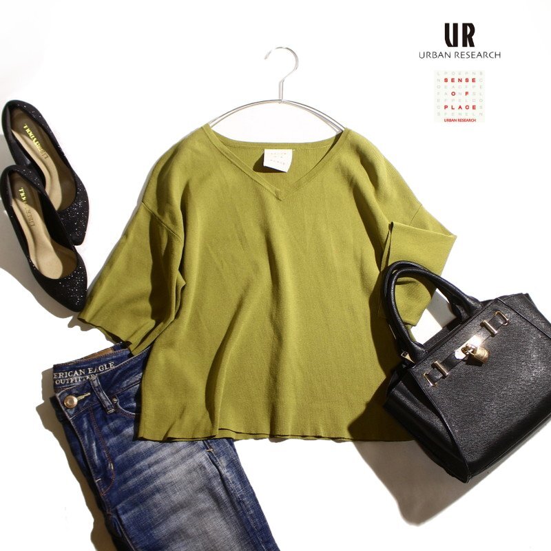 美品 URBAN RESEARCH アーバンリサーチ SENSE OF PLACE センスオブプレイス 夏 ゆったり 半袖 サマーニットカットソー くすみ グリーン 緑