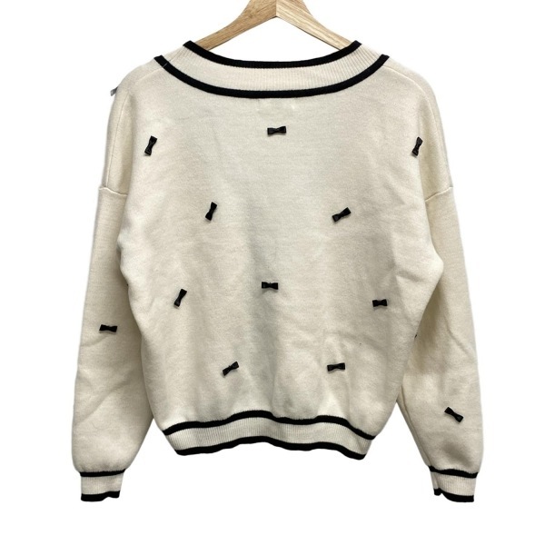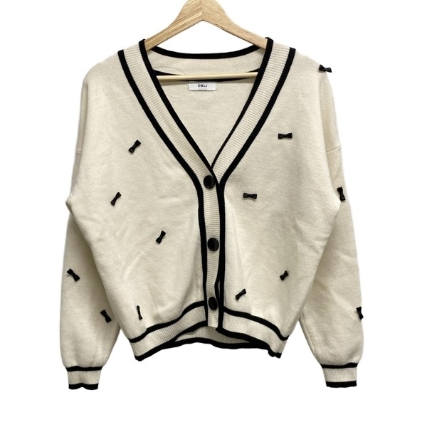 オブリ OBLI カーディガン - アイボリー×黒 レディース 長袖/リボン トップス