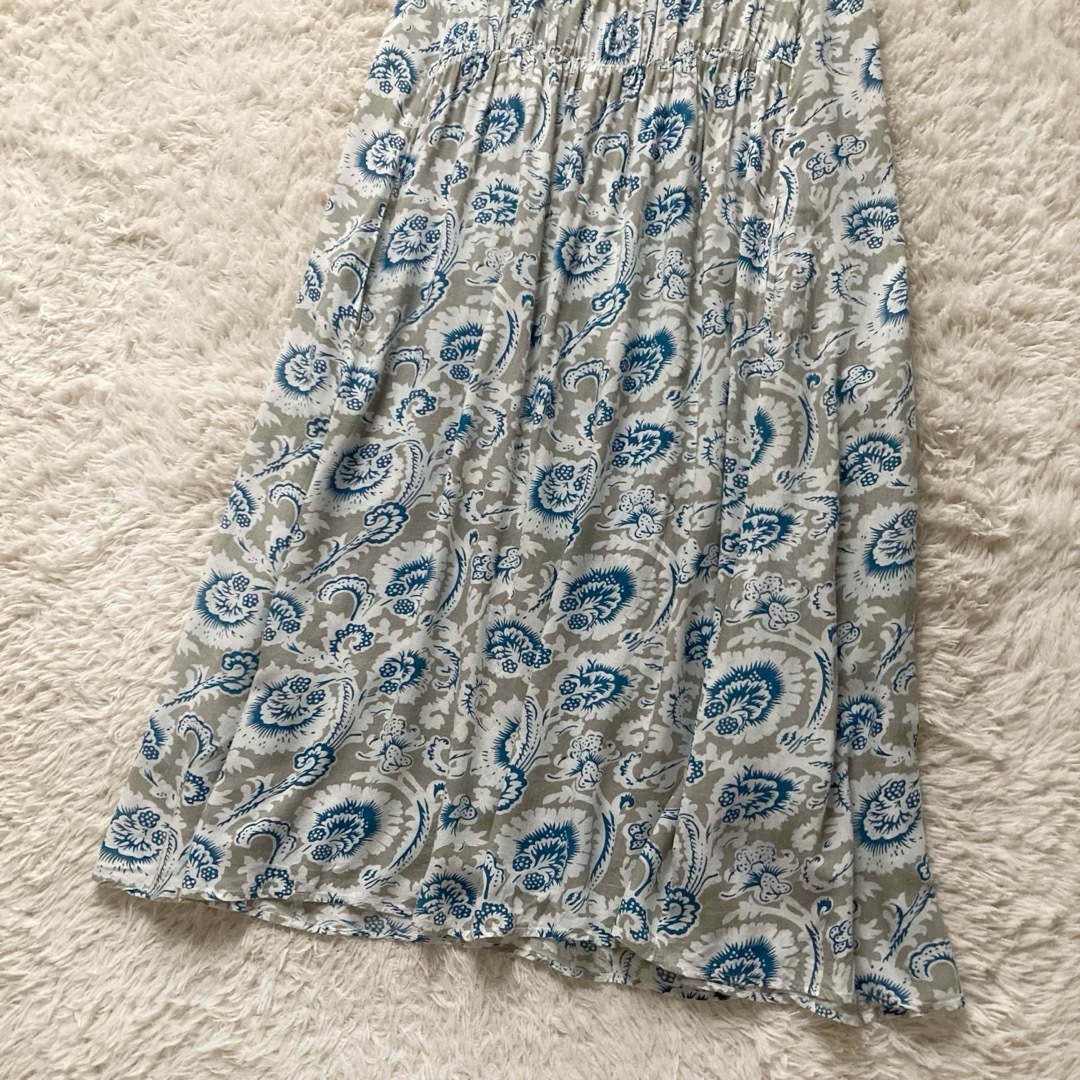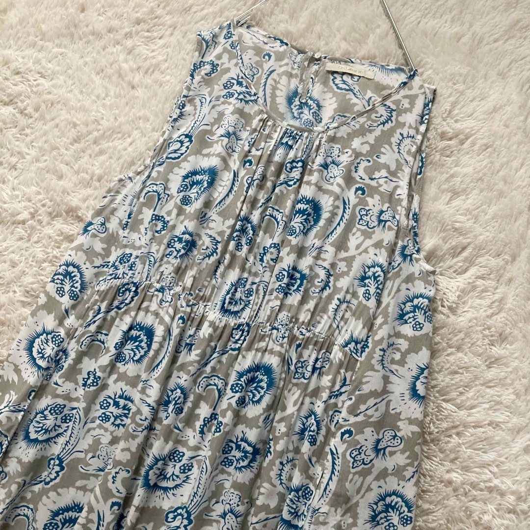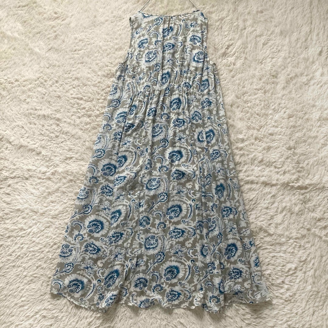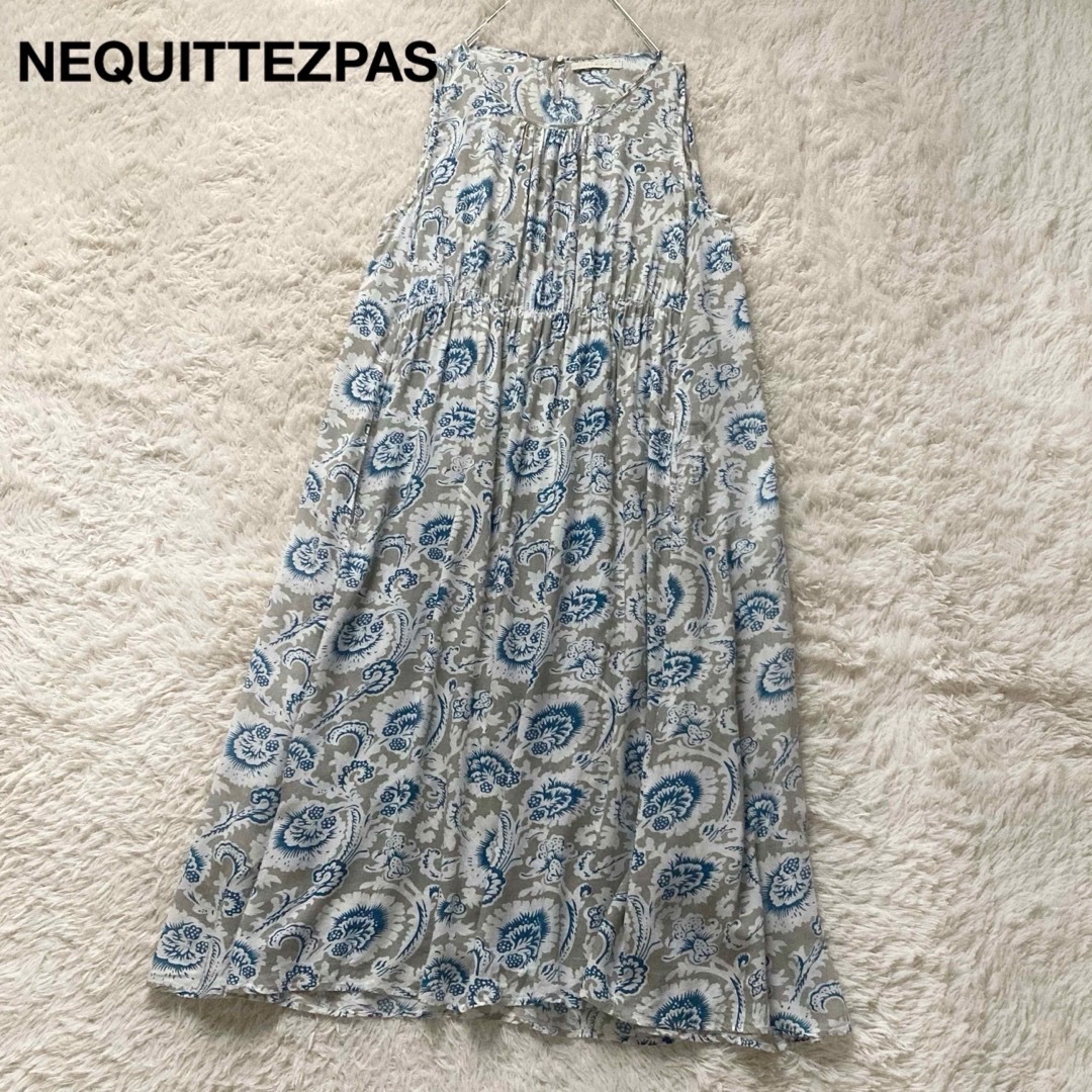 NE QUITTEZ PAS! ヌキテパ ノースリーブロングワンピース マキシ丈 フレア Aライン ギャザー 総柄 ボタニカル柄 インド製