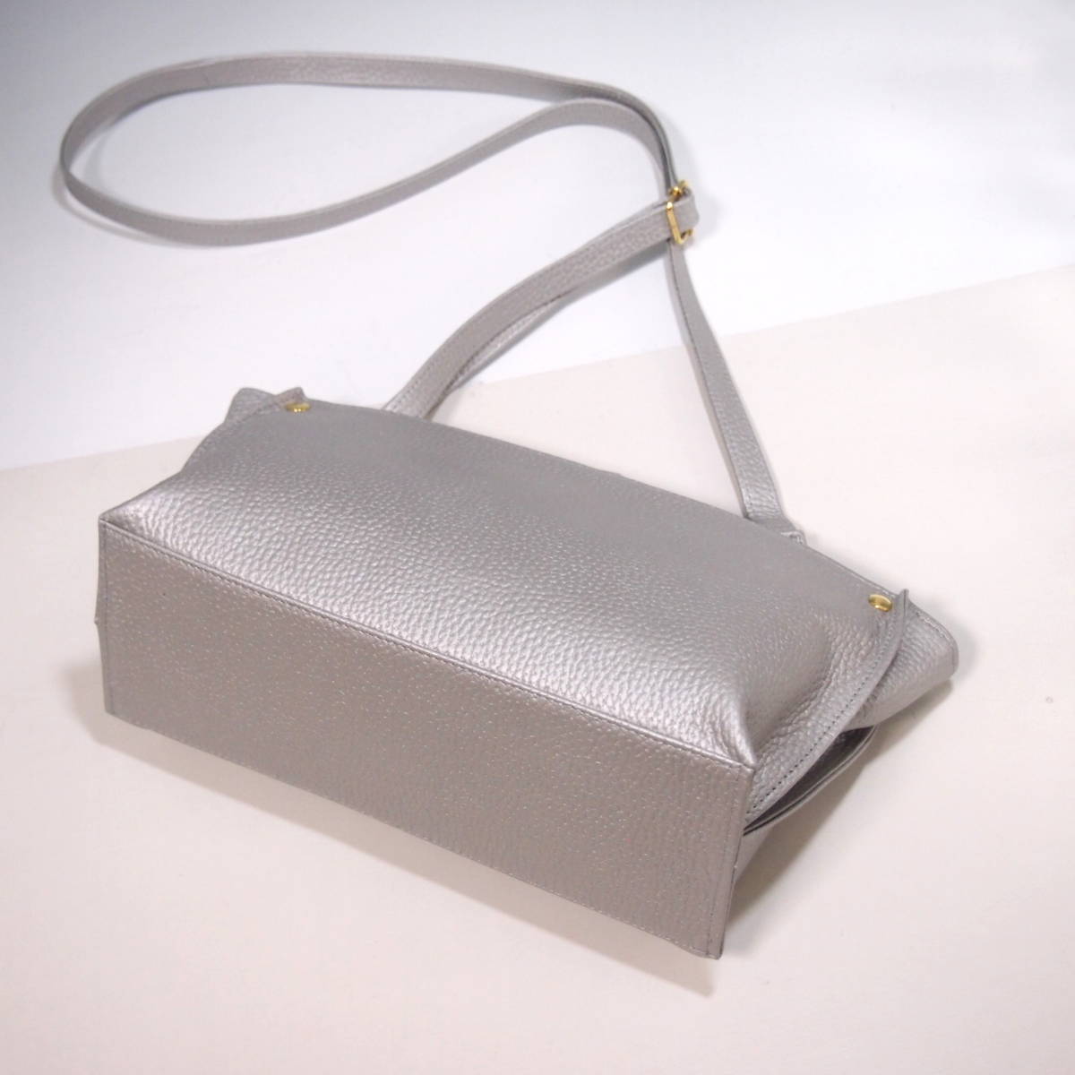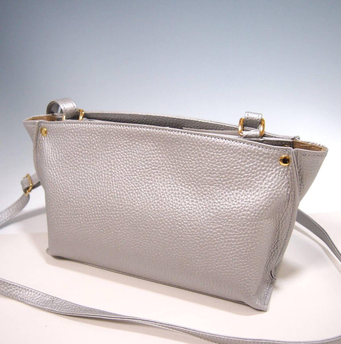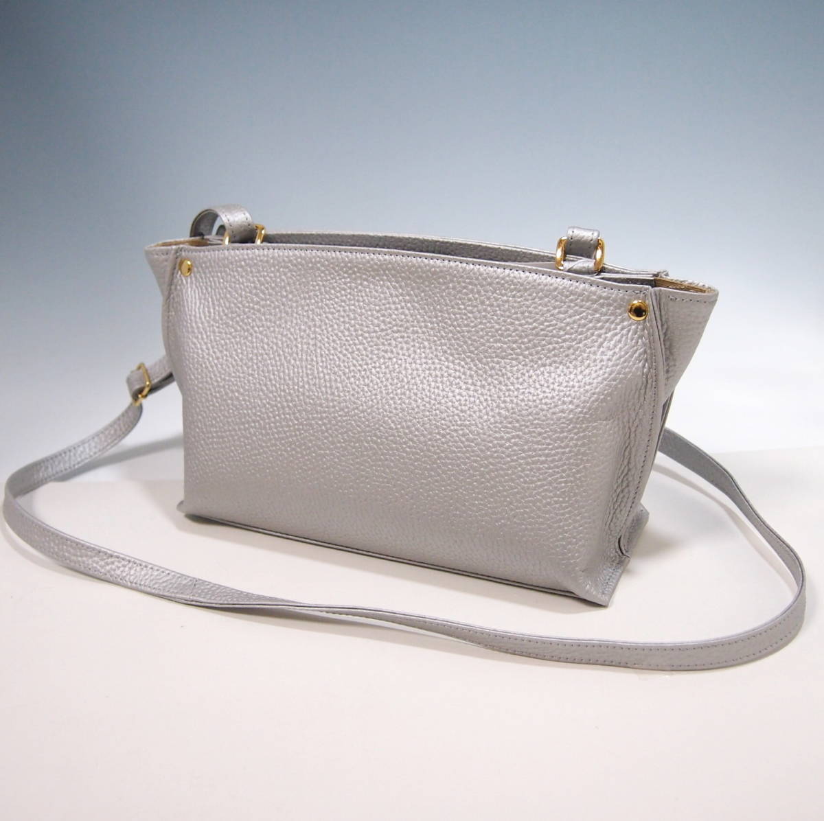 ★新型★ハンドメイド★日本製★本革★トリプル収納★斜め掛けショルダーバッグ★サコッシュ★お財布ポシェット★シルバー色▲