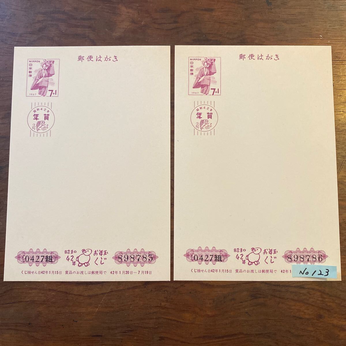 [猫] 古い 年賀はがき 二枚 No.123