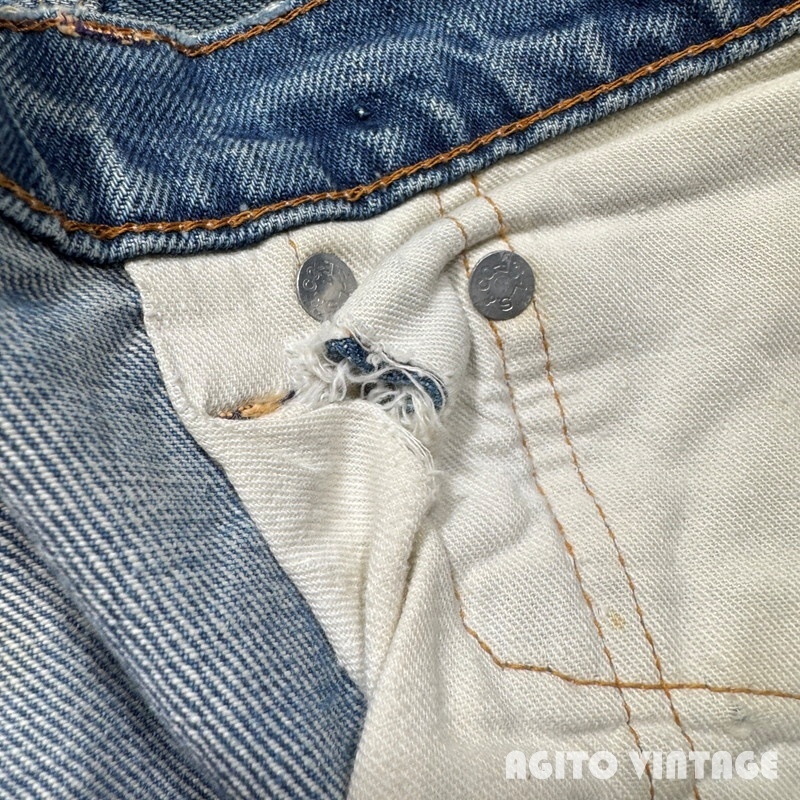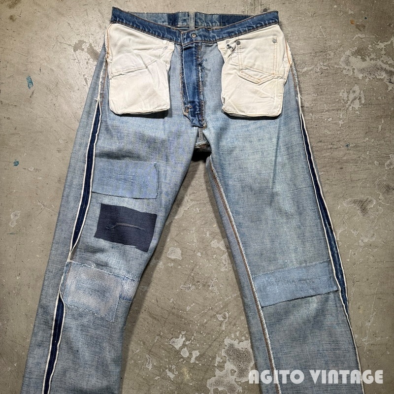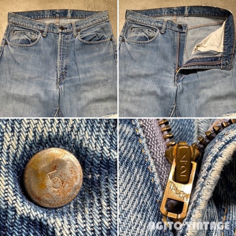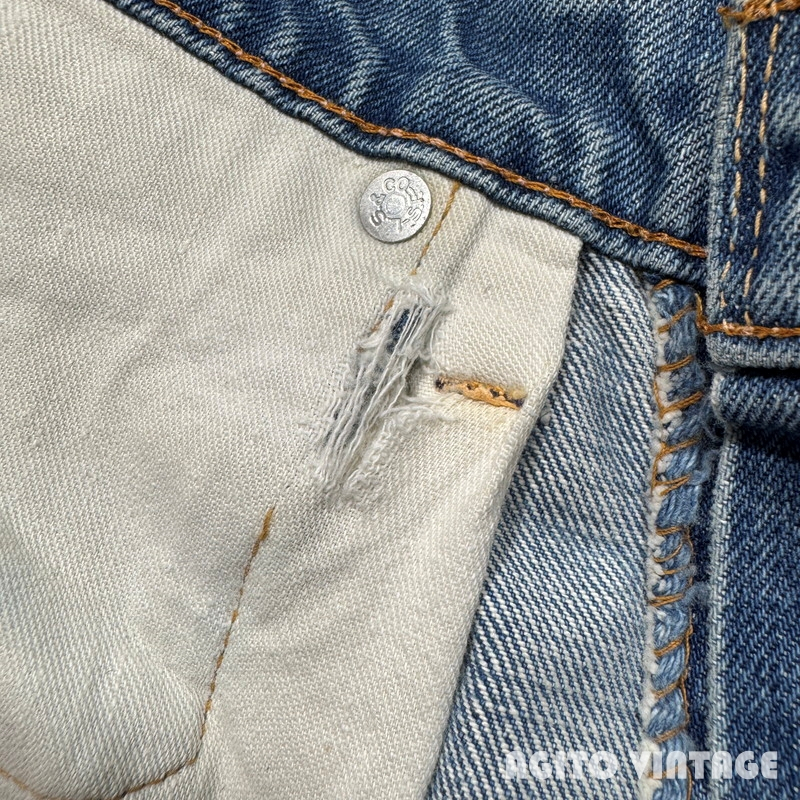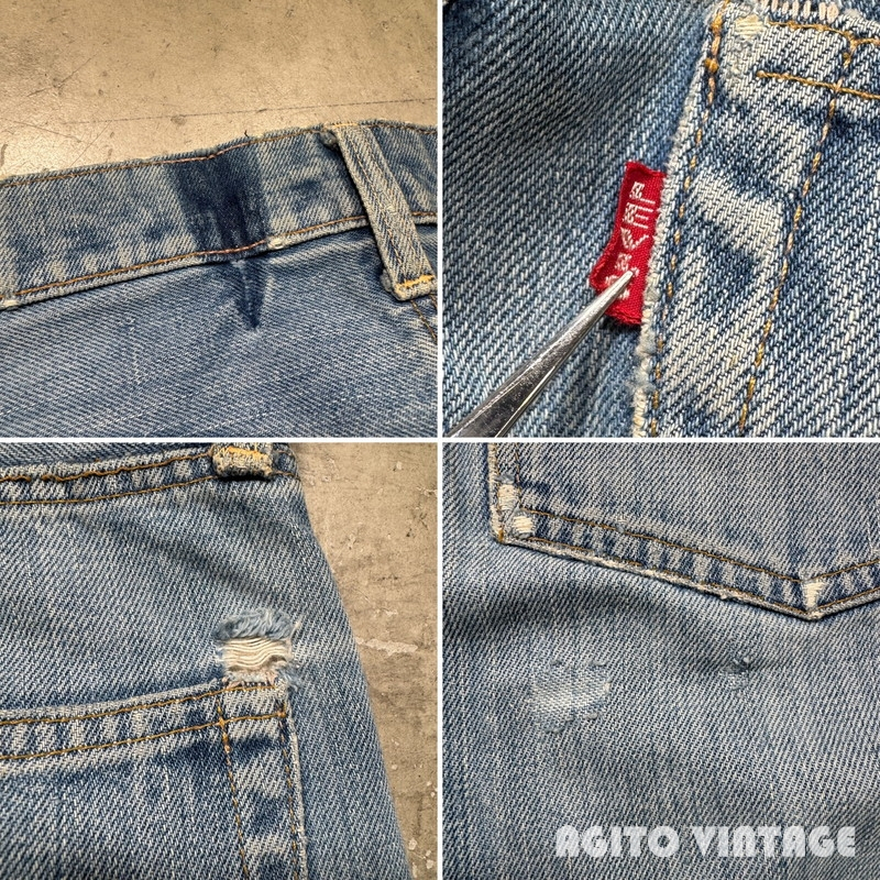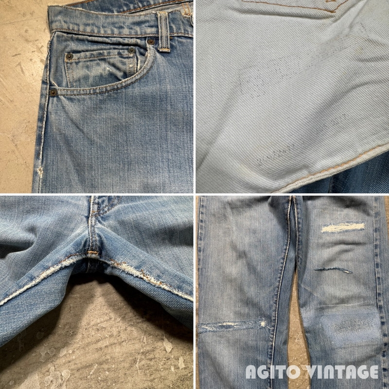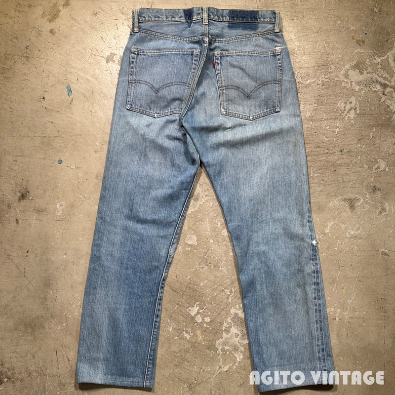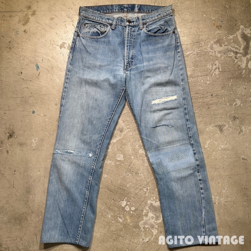 | STAFF COMMENT | 60年代から70年代のLEVI'S 505 デニムパンツです。トップボタン刻印5、平行ステッチ、42TALONジッパー、アウトシームセルヴィッジ、赤タブBig E。ご紹介するこちらは色残りは2~3割でかなり褪色が見られます。アウトシームに耳が付く1本です。全体的に使用感があり、腿や両膝にリペアが施されています。左足の真ん中のダメージは裏面から薄い接着芯で補強しております。その他内股などに細かなダメージ等がございます。裾はシングルで裾上げされています。ウエストに詰められていた部分を戻した形跡がございます。ウエストは実寸で約W32インチです。色味が薄いのでこれから暑くなる季節に合わせやすいかと思います。505で耳付きというのも嬉しいポイントだと思いますので雰囲気のお好きな方は是非この機会にいかがでしょうか。 |