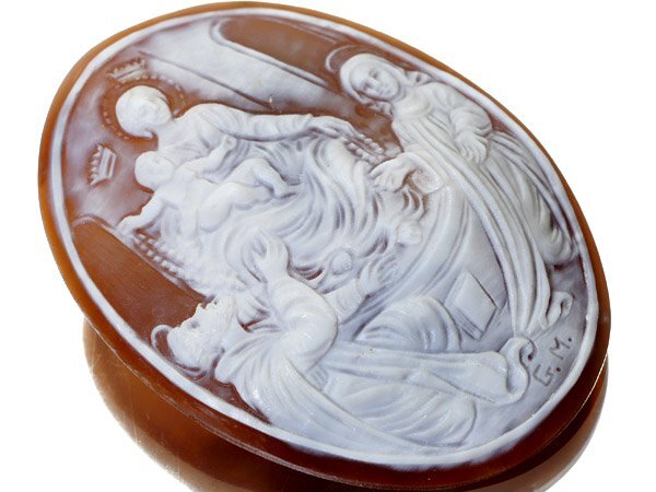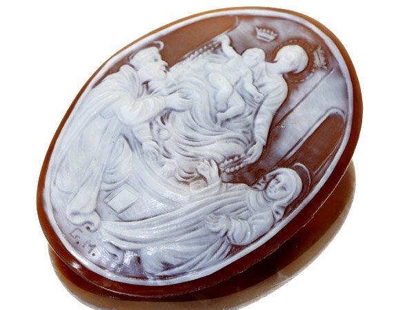 聖書のような情景を繊細に彫刻で演出した、素晴らしい高級シェルカメオルースです!