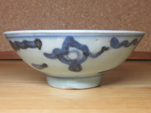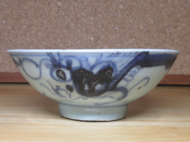 ~ ★染付・タイ・発掘茶碗★アユタヤ・チャオプラヤー川・茶椀★焼き物・ほぼ完品★骨董・レア・ビンテージ・レトロ・アンティーク・美品★ ~