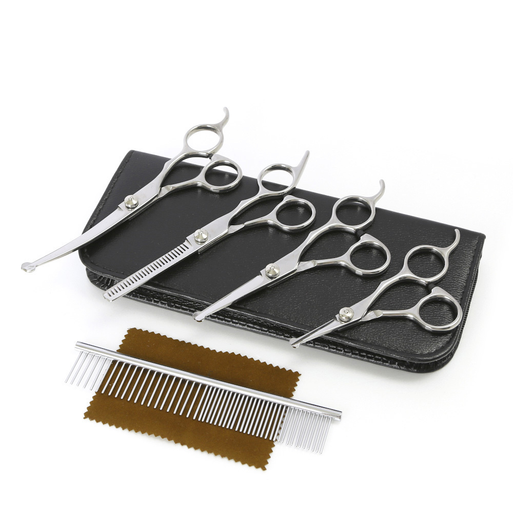 | 商品説明 | ・自宅で簡単にトリミング!ペット用シザーが登場。 ・コームにペット用トリミングシザー(ハサミ)が4本ついた、トリマー入門5点セット。プロはもちろん初心者でも扱いやすい。 ・【ストレートシザー小】目元やひげ近くの細かい操作に最適。 ・【ストレートシザー大】顔周り、耳回りの細かい操作に最適。 ・【セニングシザー(スキばさみ)】毛量を落としたり、仕上げカットに最適。 ・【カーブシザー】表面を切りそろえるときに最適。 ・【コーム】毛並みを整えたり、毛玉を取る。 ・4本のシザー(ハサミ)はセンターのネジで刃の締まり具合が調節可能。ペットの毛量に合わせて、切れ味を細かく調整できる! ・刃の先端は丸く処理されているため、ペットが急に動いても傷つけにくい優しいデザイン。切れ味がよく、トリミング時に毛が飛び散りにくい設計。 ・器具はすべてサビと汚れに強いステンレス製。汚れてもそのまま水洗いできるからお手入れラクラク♪ ・保管や持ち運びに便利な収納ケースと、トリミング後の器具のお手入れに最適なお掃除用クロスが付属。 |